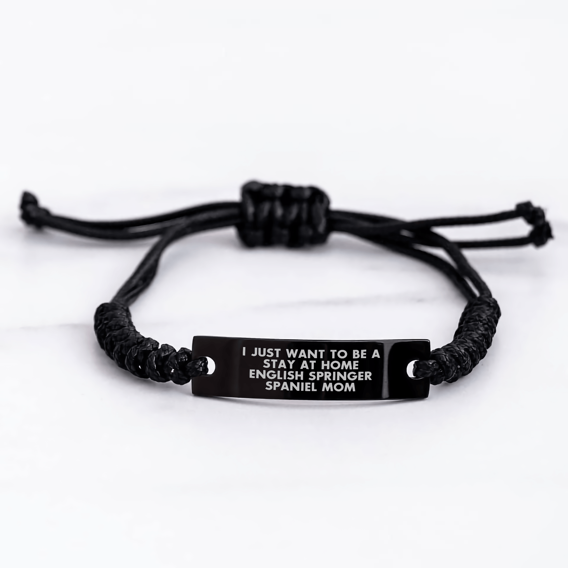- This rope bracelet is a unique gift for any English Springer Spaniel Dog mom, featuring the funny quote 'I Just Want To Be A Stay At Home English Springer Spaniel Mom'.