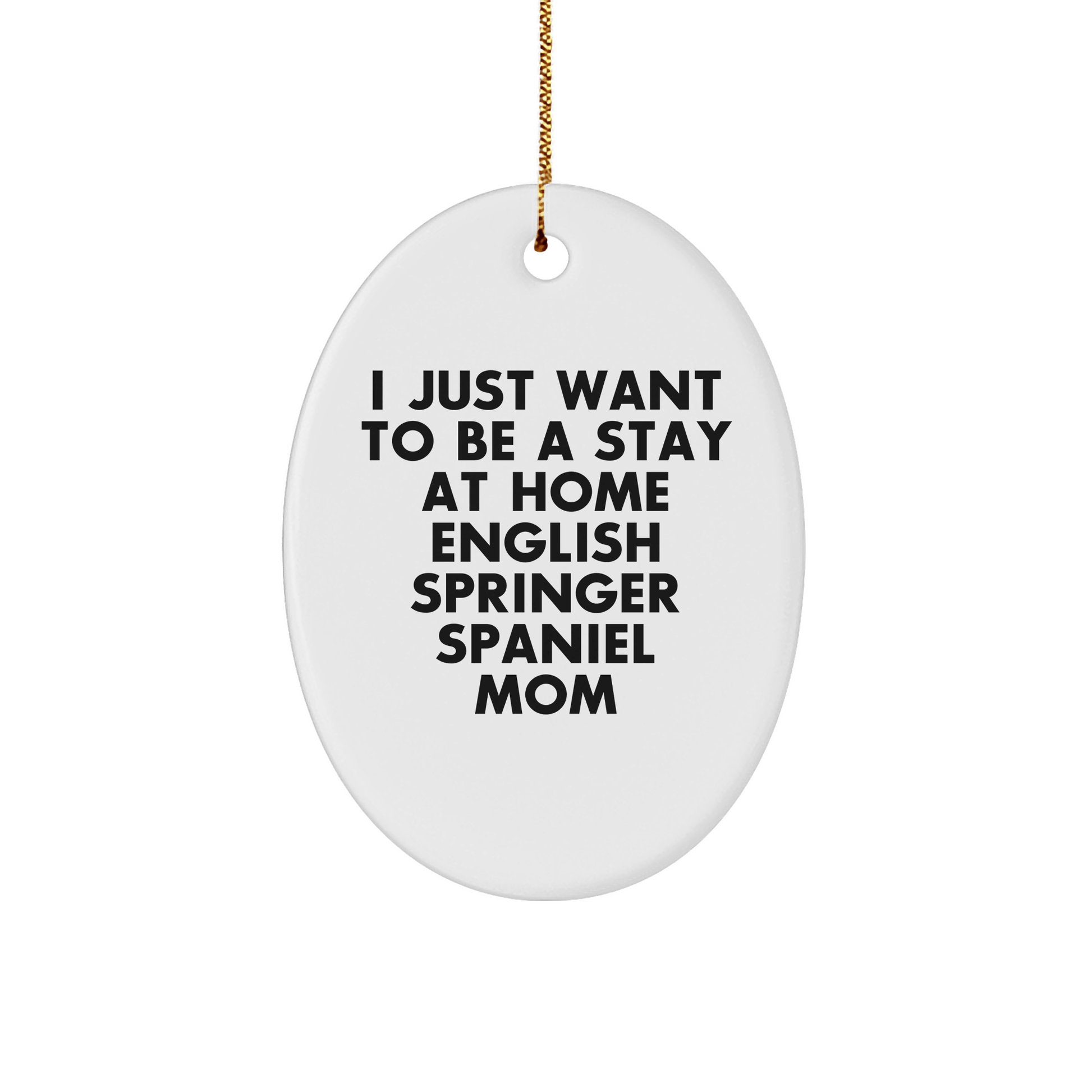 - This oval ornament is a unique and thoughtful gift for any English Springer Spaniel Dog lover, featuring the humorous quote 'I Just Want To Be A Stay At Home English Springer Spaniel Mom'.