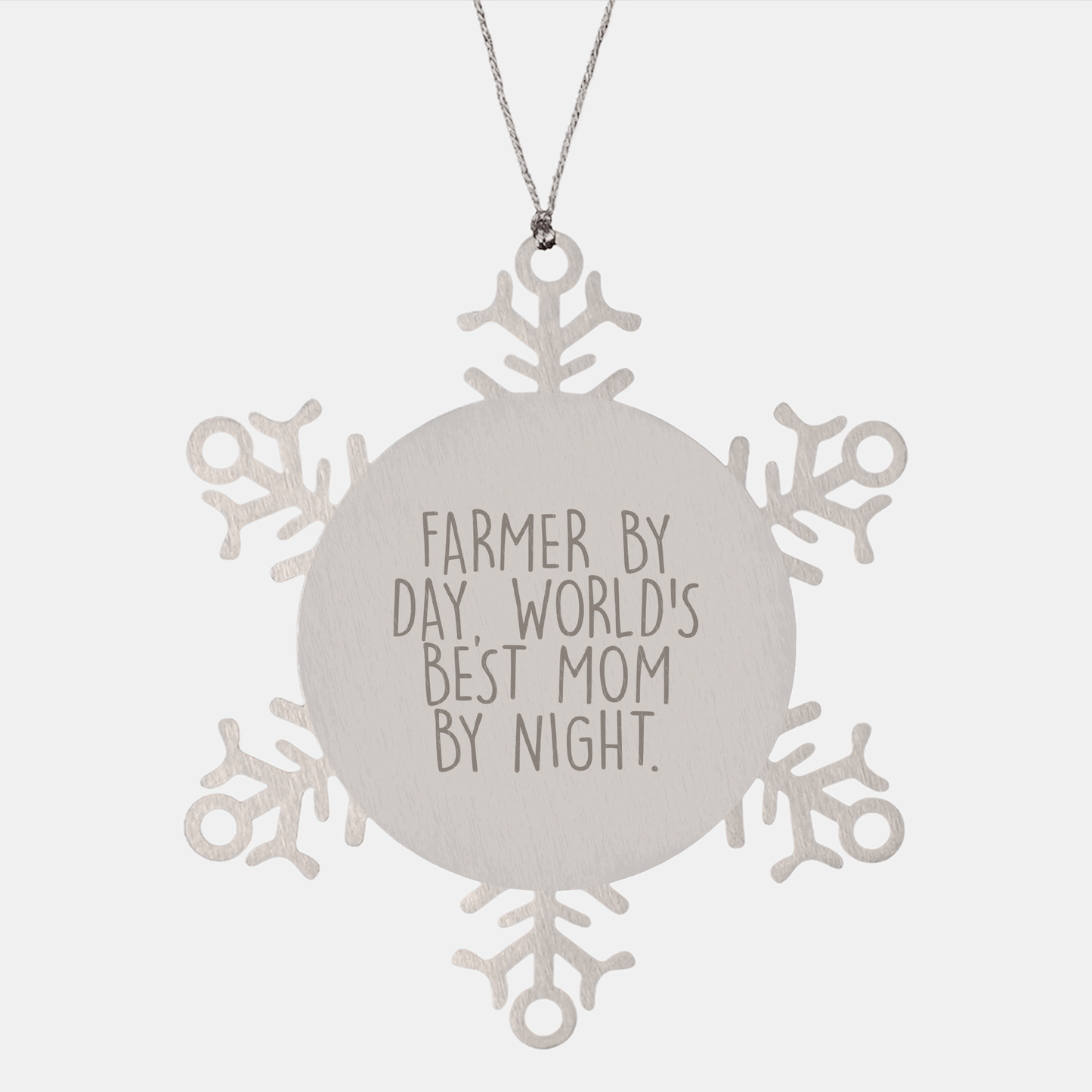 Are you looking for a unique gift for the farmer in your life? Look no further! Our 'Farmer By Day, World's Best Mom By Night.' Snowflake Ornament is the perfect way to show your appreciation for their hard work and dedication.