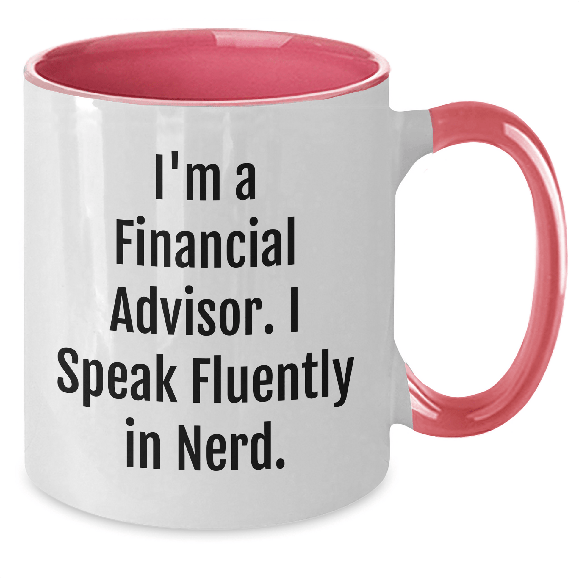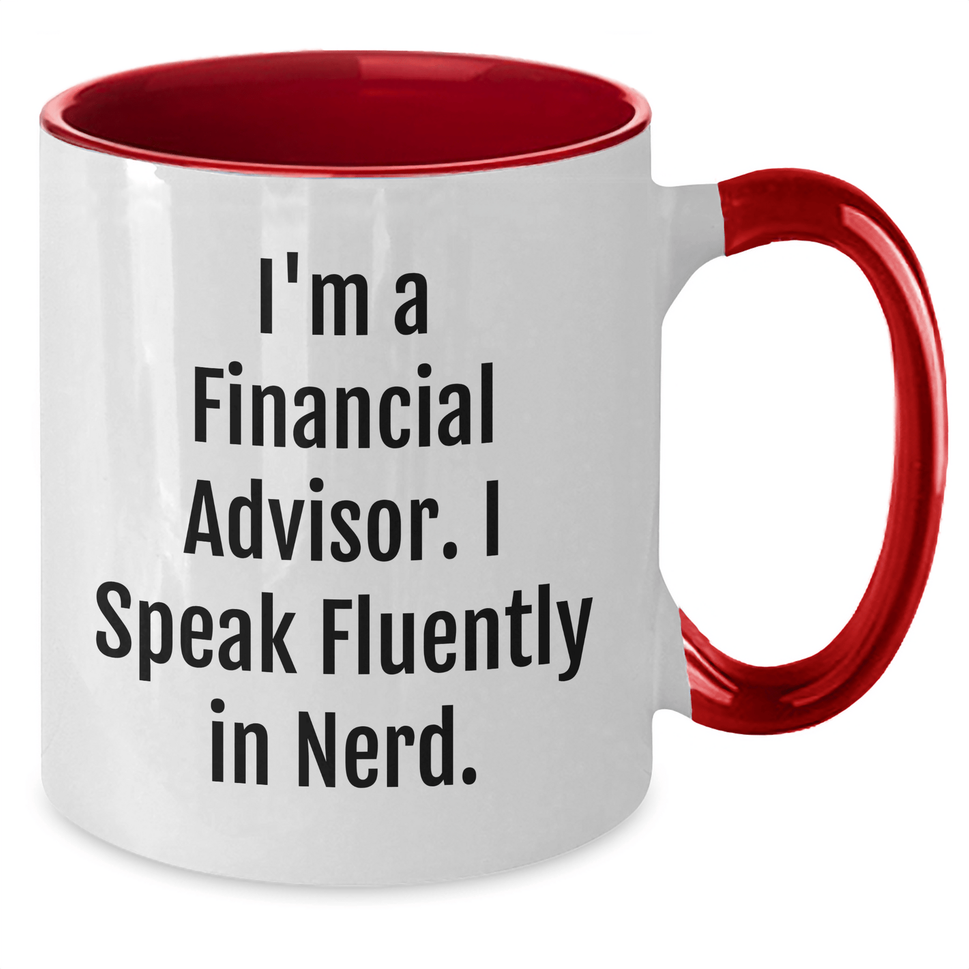 - Kickstart your day with a 'I'm A Financial Advisor. I Speak Fluently In Nerd.' Two Tone Coffee Mug, perfect for financial advisors and professionals, featuring a unique quote that showcases your expertise in a fun and quirky way.