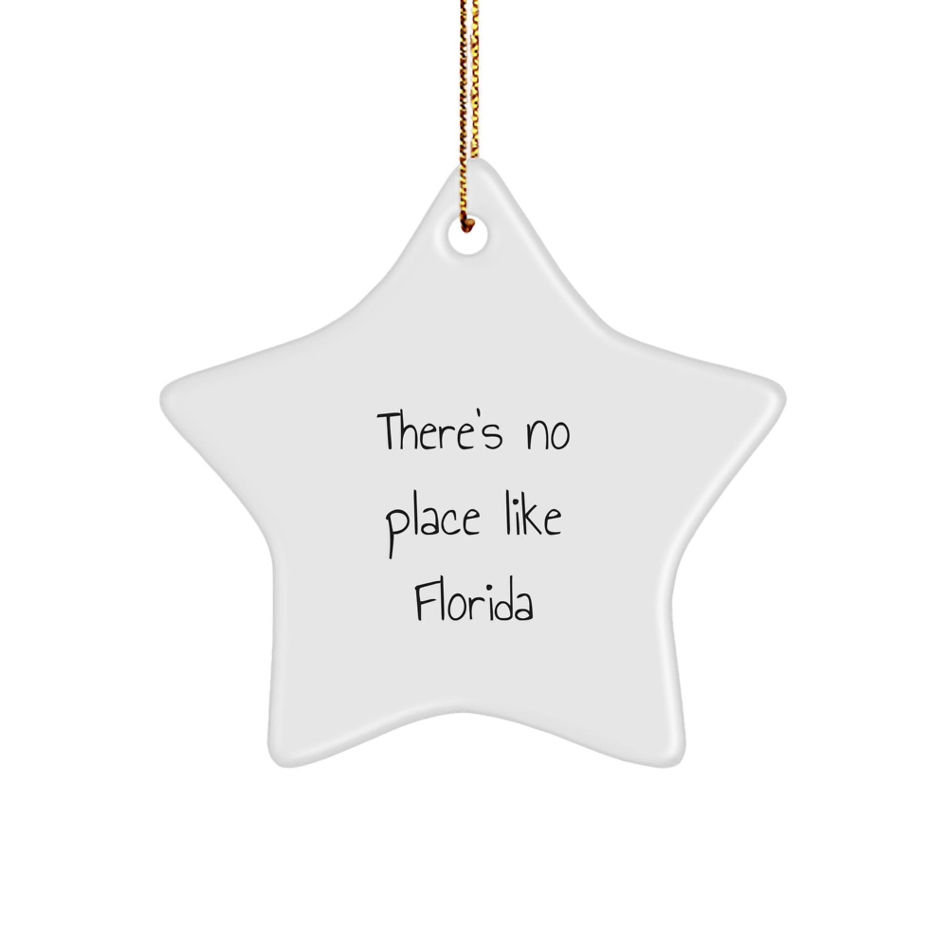 - The vibrant white star shape and beautifully printed quote 'There's No Place Like Florida' make this ornament a stunning addition to any Christmas tree or holiday decor.