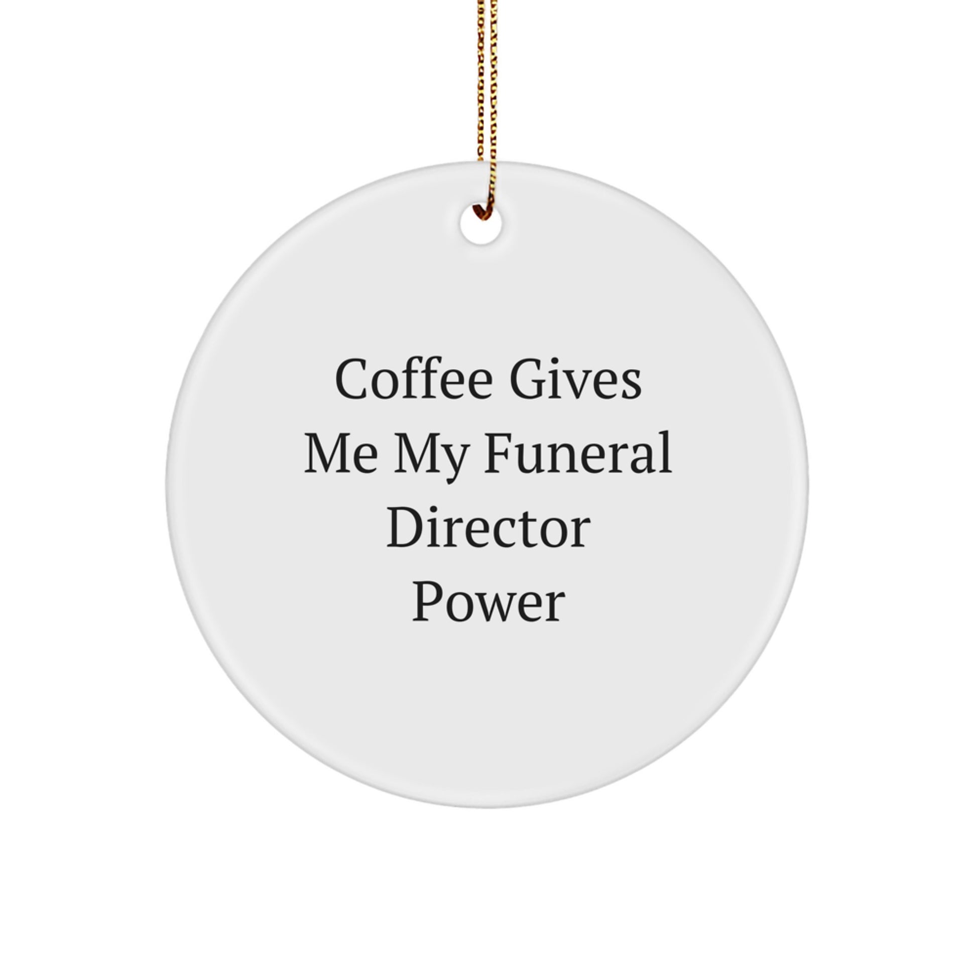 - This 'Coffee Gives Me My Funeral Director Power' Circle Ornament is a fun and inspiring way to celebrate their hard work and dedication