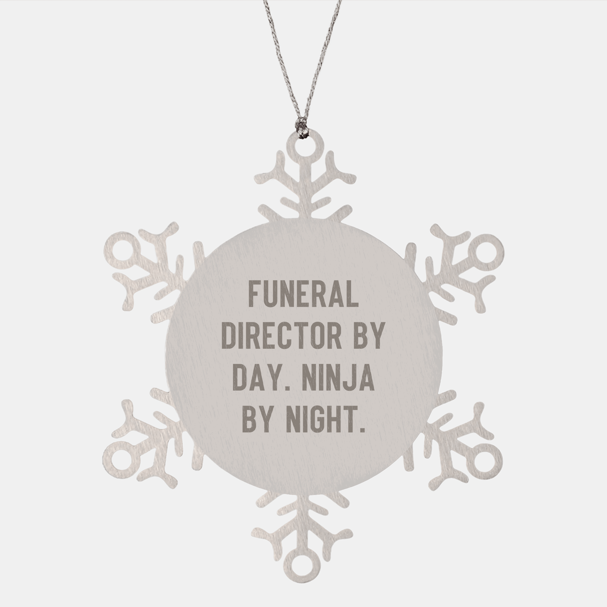 "keywords": "Funeral Director, Snowflake Ornament, Christmas, Gift, Unique Gift, Men's Gift, Family Unique Gift, Friends Gift, Ninja, By Day, By Night, Stainless Steel, Shatterproof, Decorative Ornament