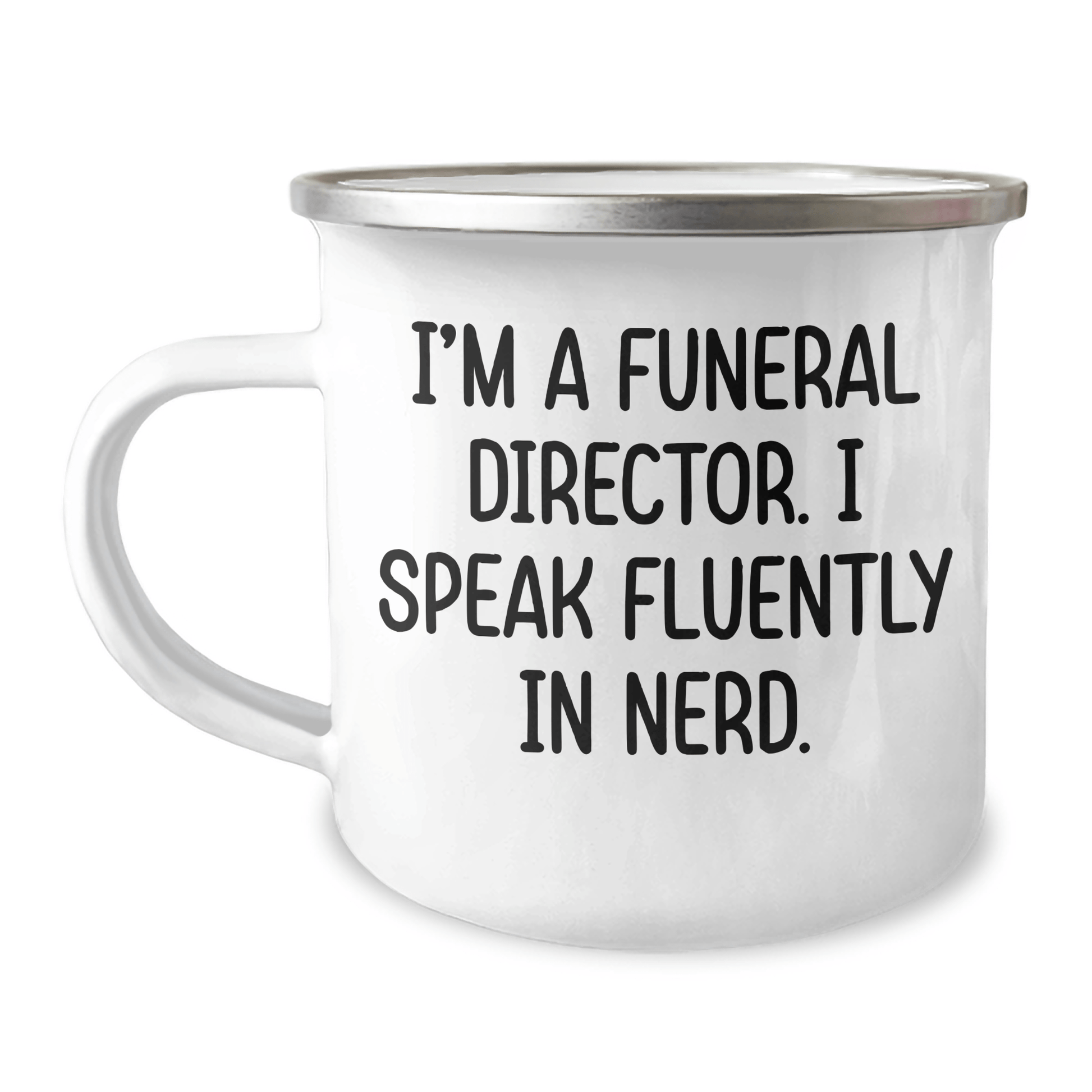 Are you looking for a unique gift for a Funeral Director who loves camping? Look no further! This funny quote Camping Mug is the perfect way to show your appreciation for their work. As a Funeral Director, they know how to handle the tough situations, and this mug is a reminder that they can also have fun and be nerdy. The quote 'I'm A Funeral Director. I Speak Fluently In genius.' is a great conversation starter and will bring a smile to their face. This gift is perfect for graduation, and it's a unique way to say 'thank you' for their dedication to their work.