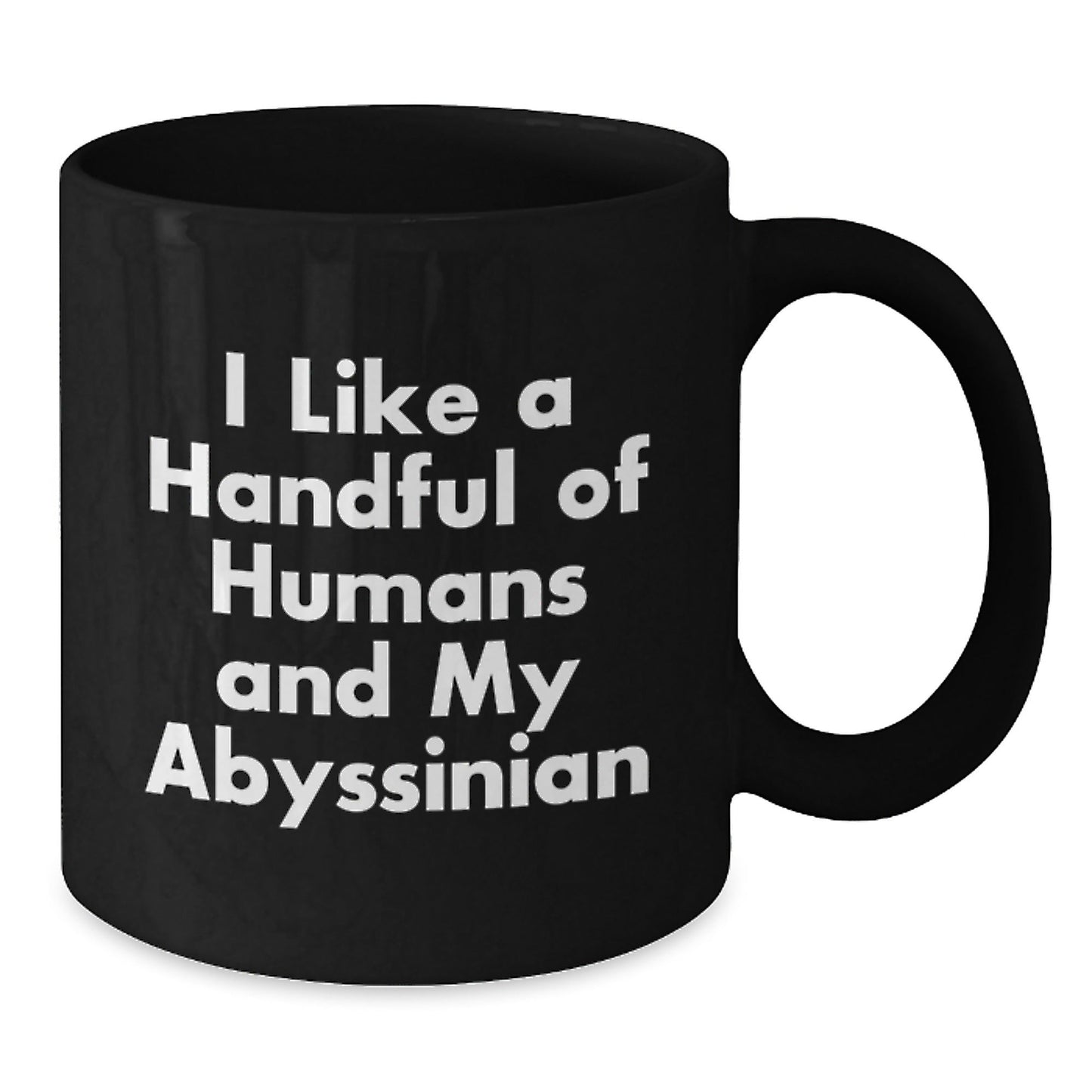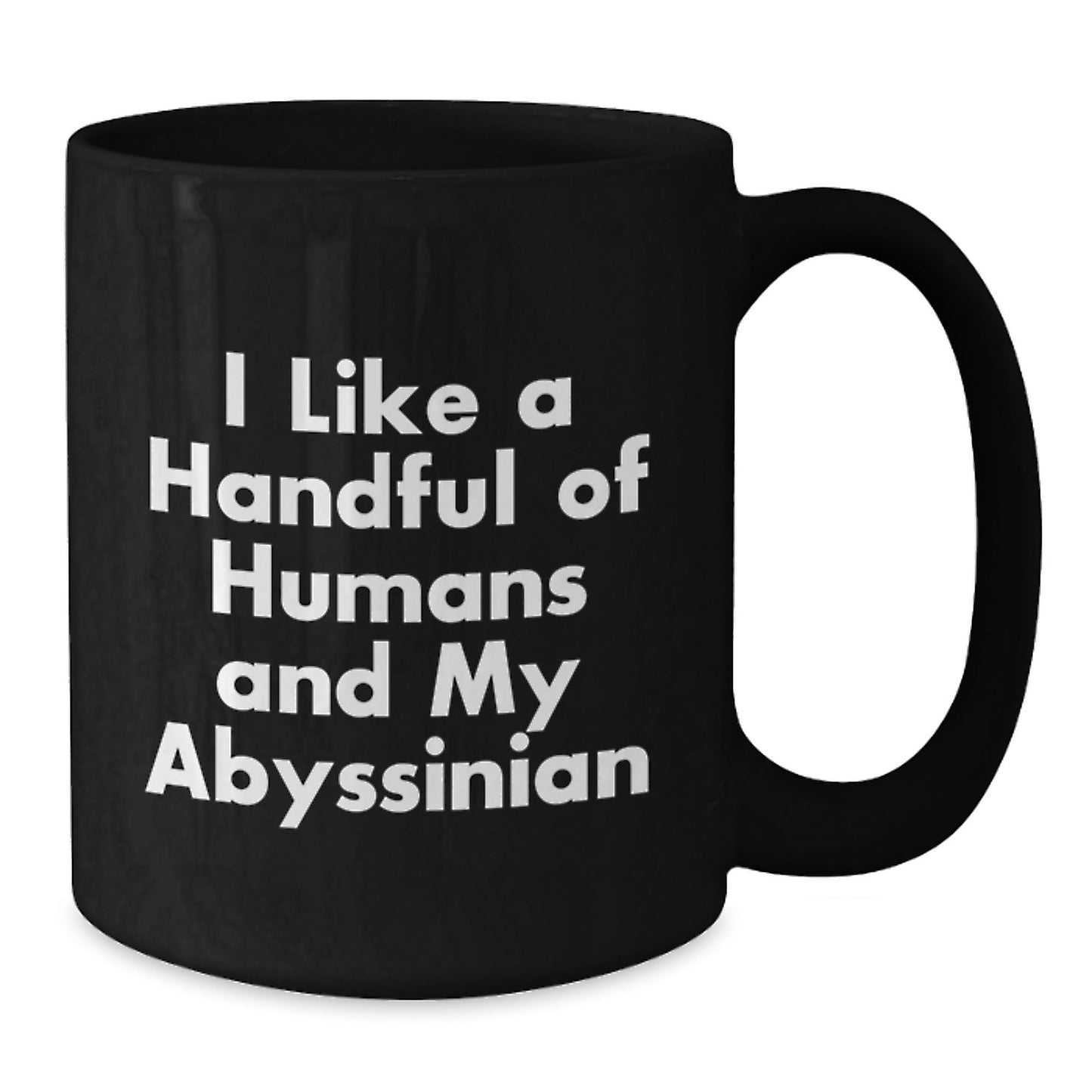 Are you an Abyssinian Cat enthusiast or looking for a unique gift for the special Abyssinian Cat lover in your life? Look no further! This Black Coffee Mug is the perfect way to show off your love for Abyssinian Cats. With a funny quote that says 'I Like A Handful Of Humans And My Abyssinian', this mug is sure to bring a smile to any Abyssinian Cat fan's face. Whether it's a graduation gift for a friend or a gift for a coworker, this mug is a thoughtful and humorous way to celebrate any occasion. The mug is available in black with a capacity of 11oz or 15oz, making it perfect for hot or cold beverages. And, with its ceramic material, it's microwave and dishwasher safe, making it easy to clean and maintain. So, why wait? Get your Abyssinian Cat Black Coffee Mug today and show off your love for these adorable felines!