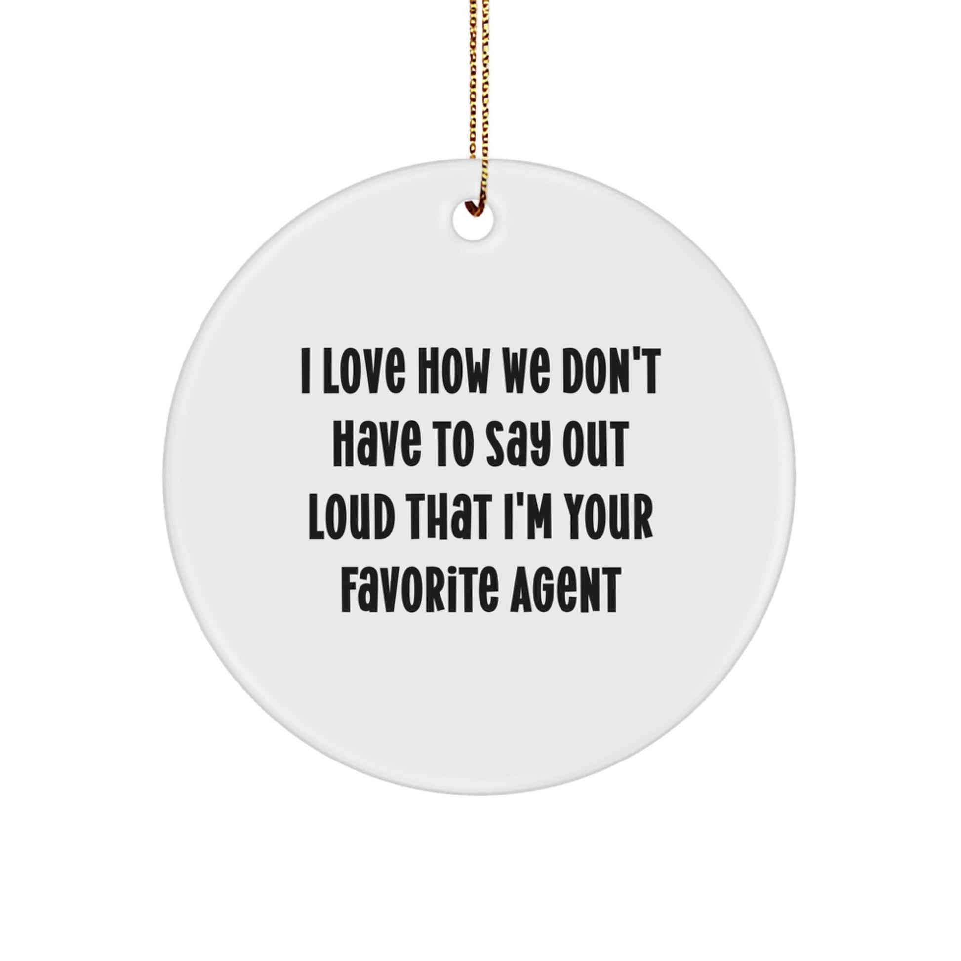 - 'I Love How We Don't Have To Say Out Loud That I'm Your Favorite Agent' - a thoughtful and unique Agent Circle Ornament that's sure to delight loved ones this Christmas. Durable MDF construction ensures a long-lasting design, while the high-gloss finish adds a touch of elegance. Perfect for gifting or self-purchase, this Circle Ornament is a thoughtful way to show appreciation for your favorite Agent.