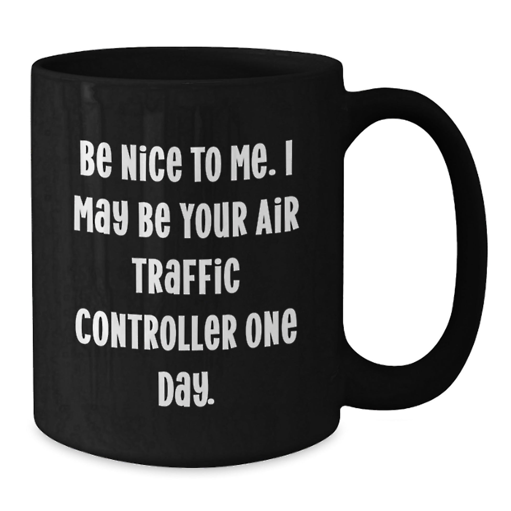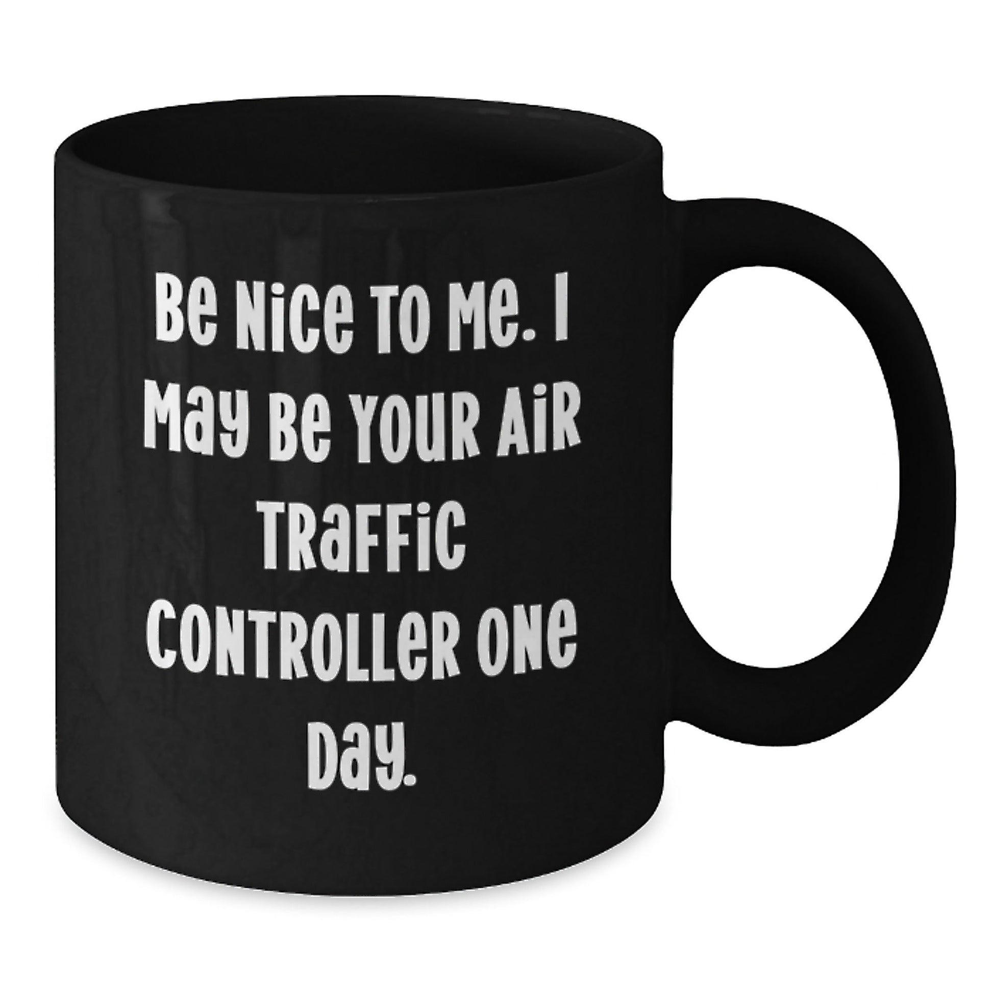 - This funny black coffee mug is the ideal gift for any Air Traffic Controller, with its humorous quote 'Be Nice To Me. I May Be Your Air Traffic Controller One Day.'