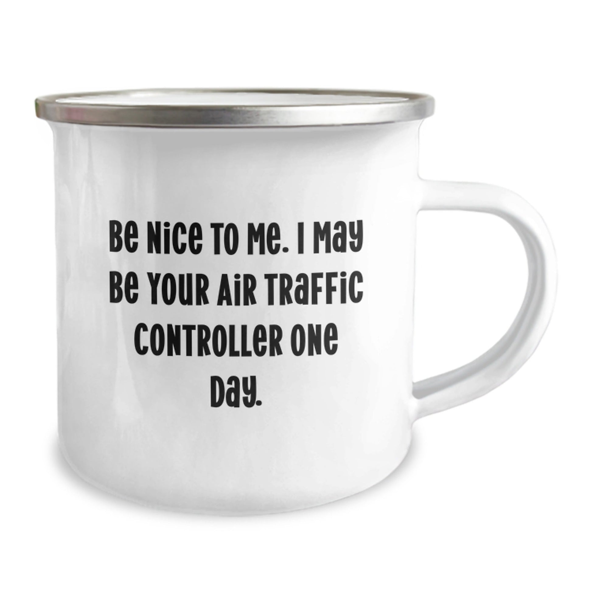 Are you looking for a unique gift for the Air Traffic Controller in your life? Look no further! This camping mug is perfect for any Air Traffic Controller enthusiast, with its funny and inspirational quote 'Be Nice To Me. I May Be Your Air Traffic Controller One Day.'