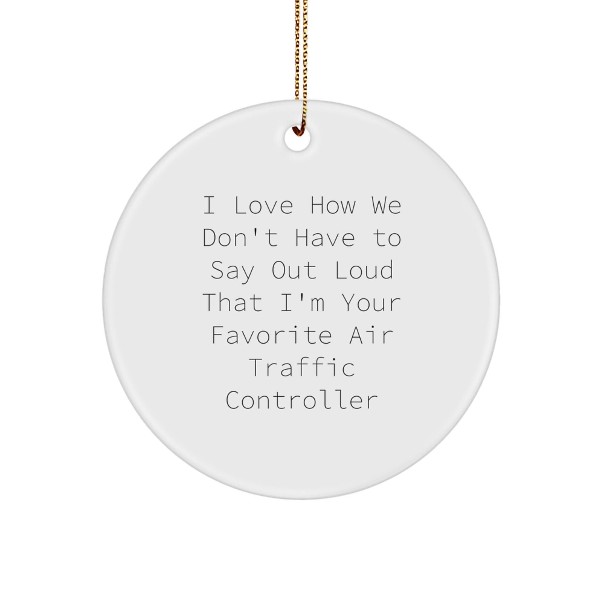 - Bring a touch of aviation to your Christmas decor with this unique 'I Love How We Don't Have To Say Out Loud That I'm Your Favorite Air Traffic Controller' Circle Ornament, crafted from sturdy MDF with a high-gloss plastic finish for long-lasting designs and vibrant colors.
