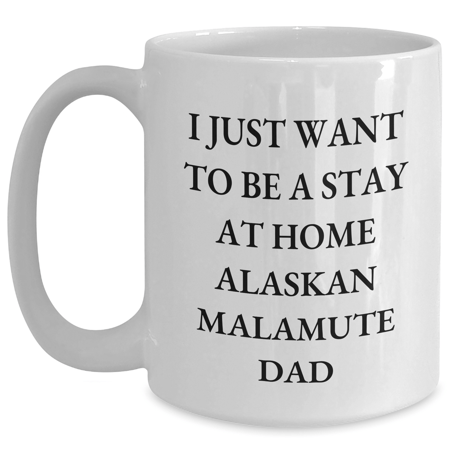 - Bring a smile to the face of your favorite Alaskan Malamute dad with this 'I Just Want To Be A Stay At Home Alaskan Malamute Dad' white coffee mug, perfect for sipping their morning brew while relaxing at home.