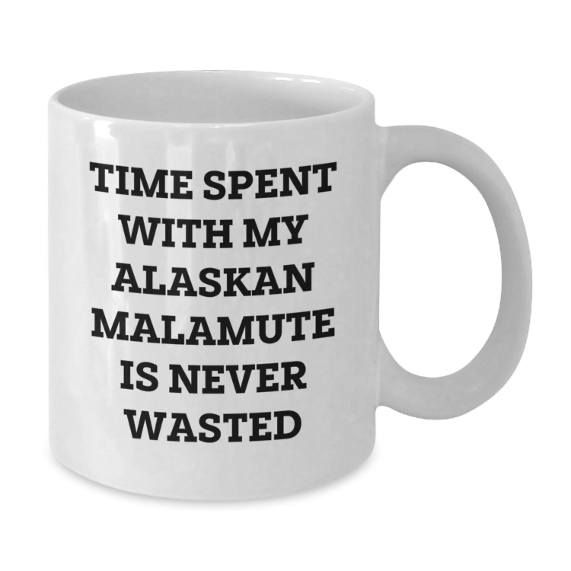 Are you an Alaskan Malamute Dog enthusiast or looking for a unique gift for an Alaskan Malamute Dog lover? This funny White Coffee Mug is a perfect birthday gift for friends, family, or coworkers who adore their furry friends. The quote 'Time Spent with My Alaskan Malamute Is Never Wasted' is a heartwarming reminder of the joy and companionship these amazing dogs bring to our lives. Made from ceramic, this microwave and dishwasher safe White Coffee Mug is a thoughtful gift for any occasion. Whether you're sending a birthday gift from friends or a special message from family, this White Coffee Mug is sure to bring a smile. So why not celebrate the special bond between humans and Alaskan Malamute Dogs with this unique and thoughtful gift? Treat your loved ones to a birthday they'll never forget!