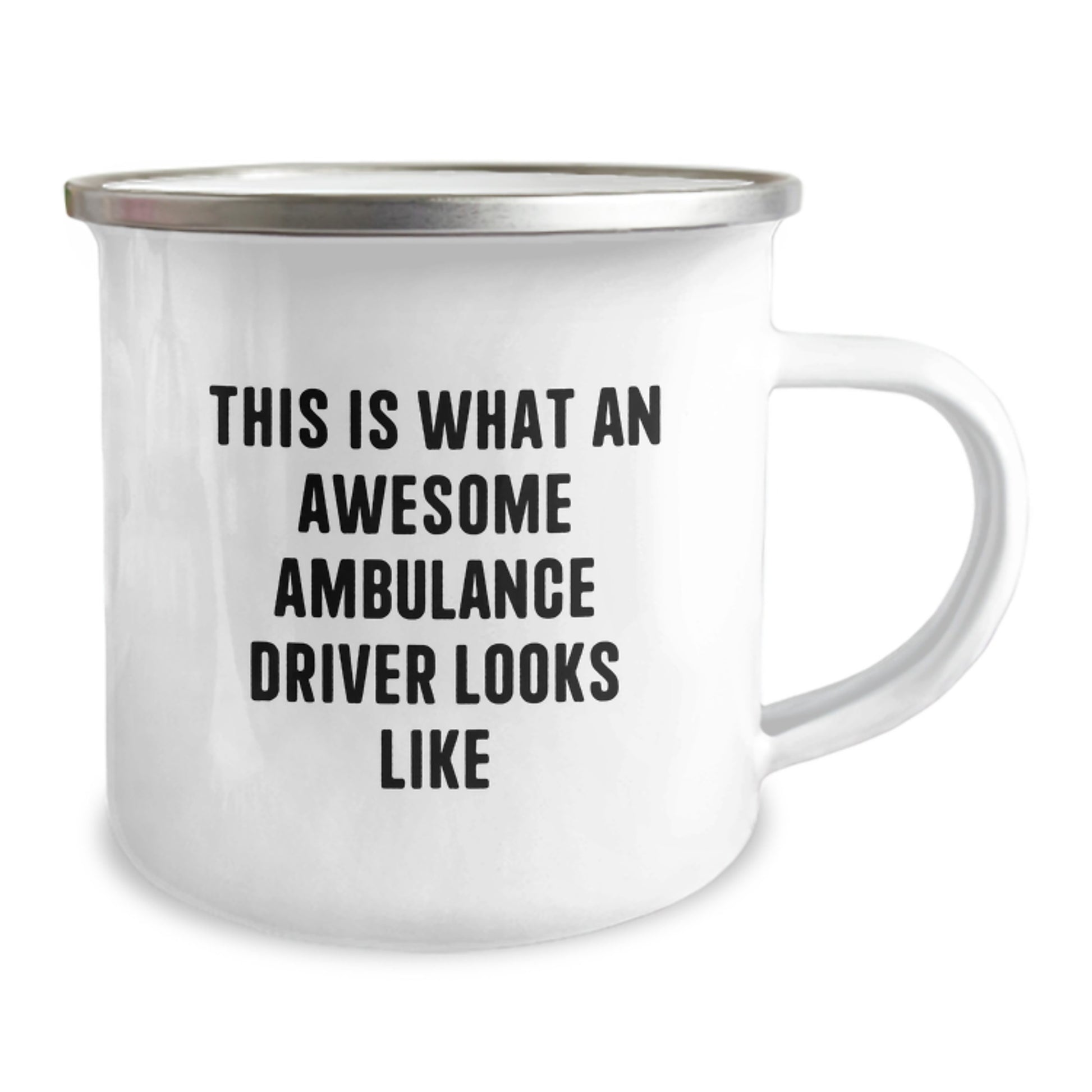 - This Ambulance Driver Camping Mug features a funny quote that will surely bring a smile to the face of any Ambulance Driver. 'This Is What An Awesome Ambulance Driver Looks Like' is a humorous take on the daily life of an Ambulance Driver, and it's a great conversation starter.