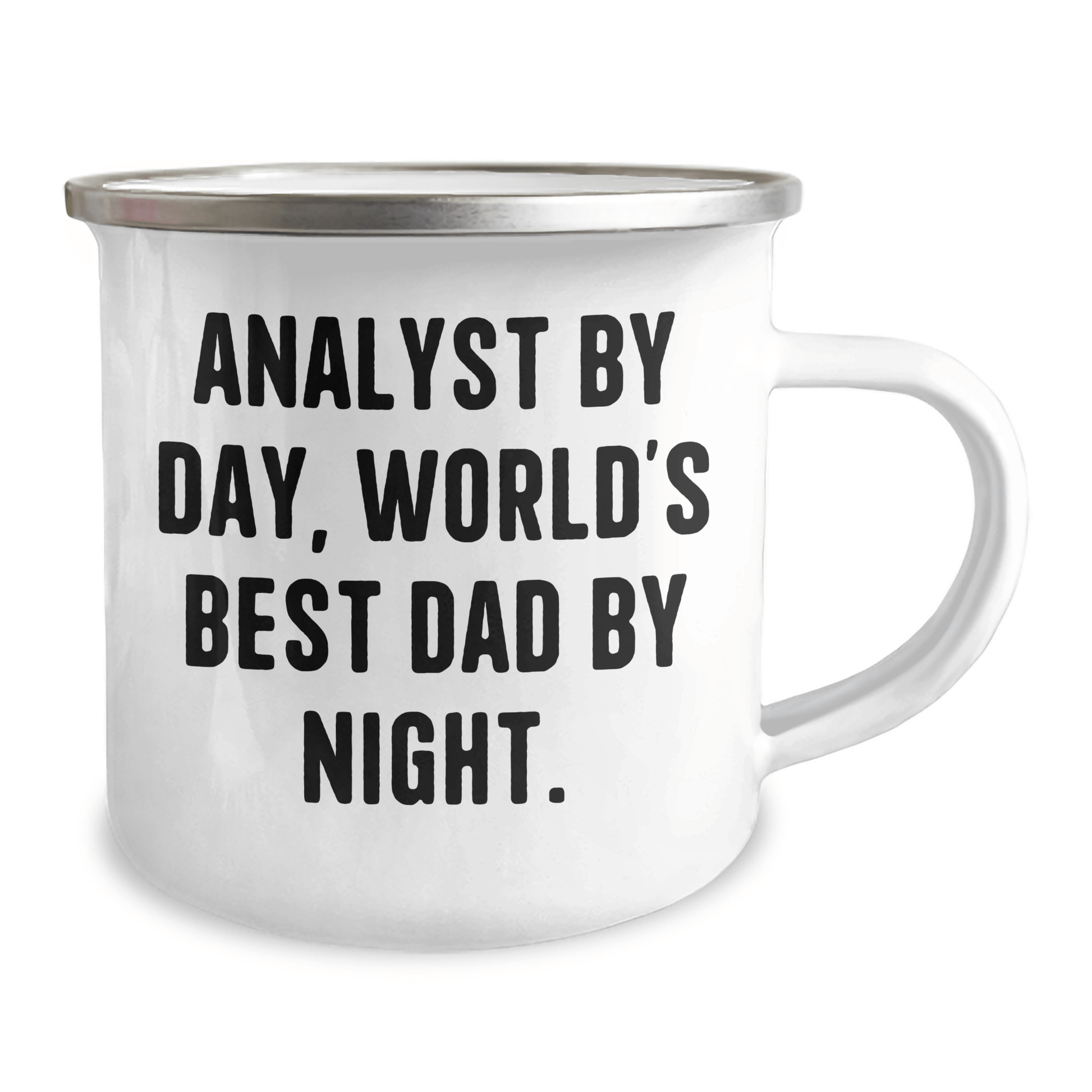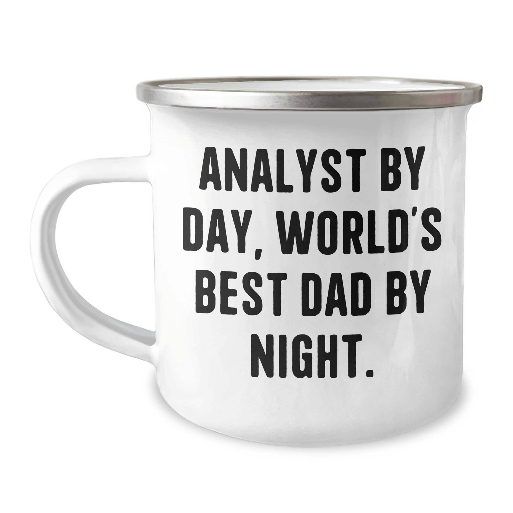 Are you an Analyst by day and a world-renowned dad by night? Do you love camping and exploring the great outdoors with your family? This Analyst Camping Mug is the ideal gift for you or your favorite Analyst who loves to combine their professional and personal life. The 12 oz stainless steel mug with enamel finish is sturdy, easy to clean, and features a permanent printing that won't fade after washing. Hand washing with mild detergent is recommended for optimal results.