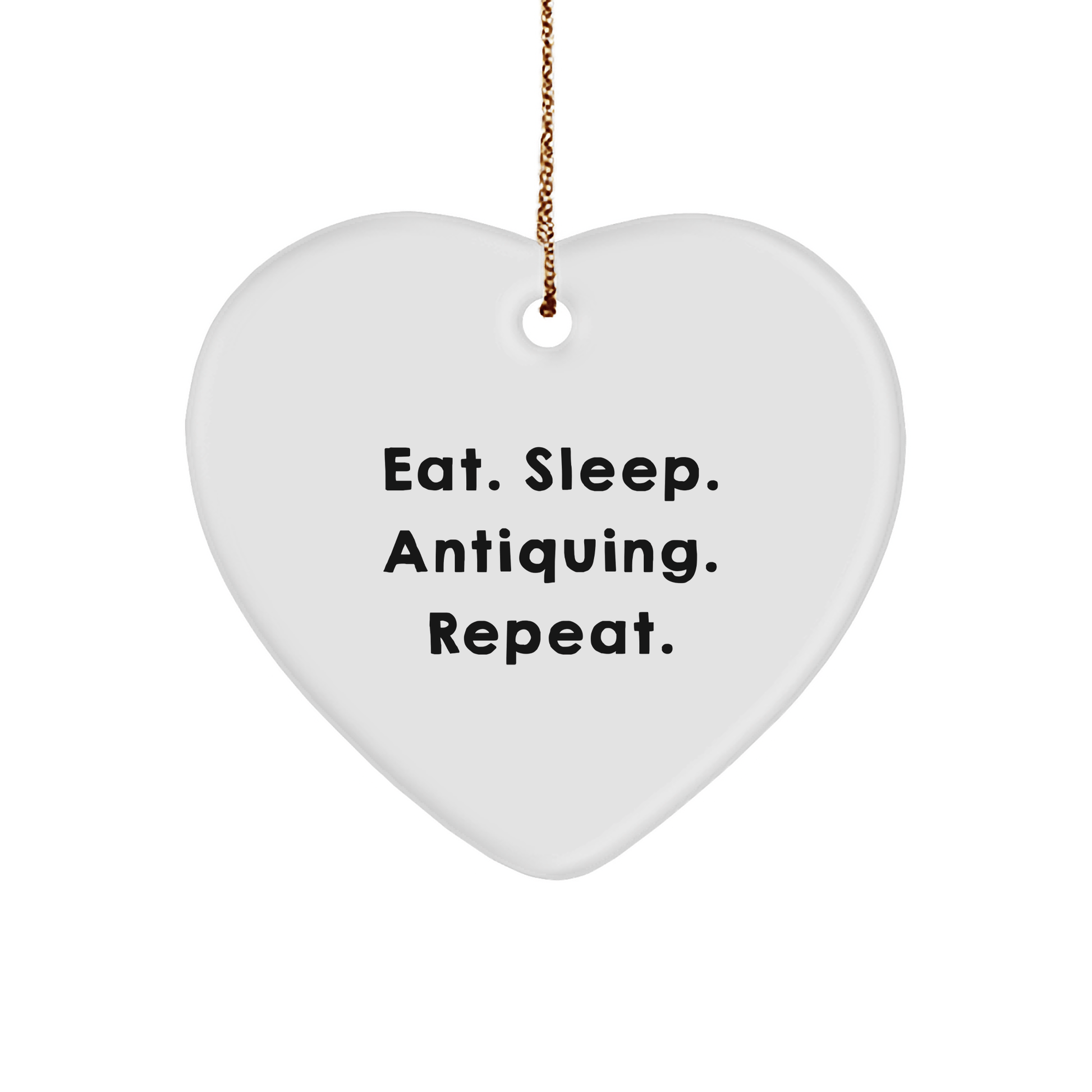 Don't wait - get your Eat. Sleep. Antiquing. Repeat. White Heart Ornament today and make it a holiday season to remember!