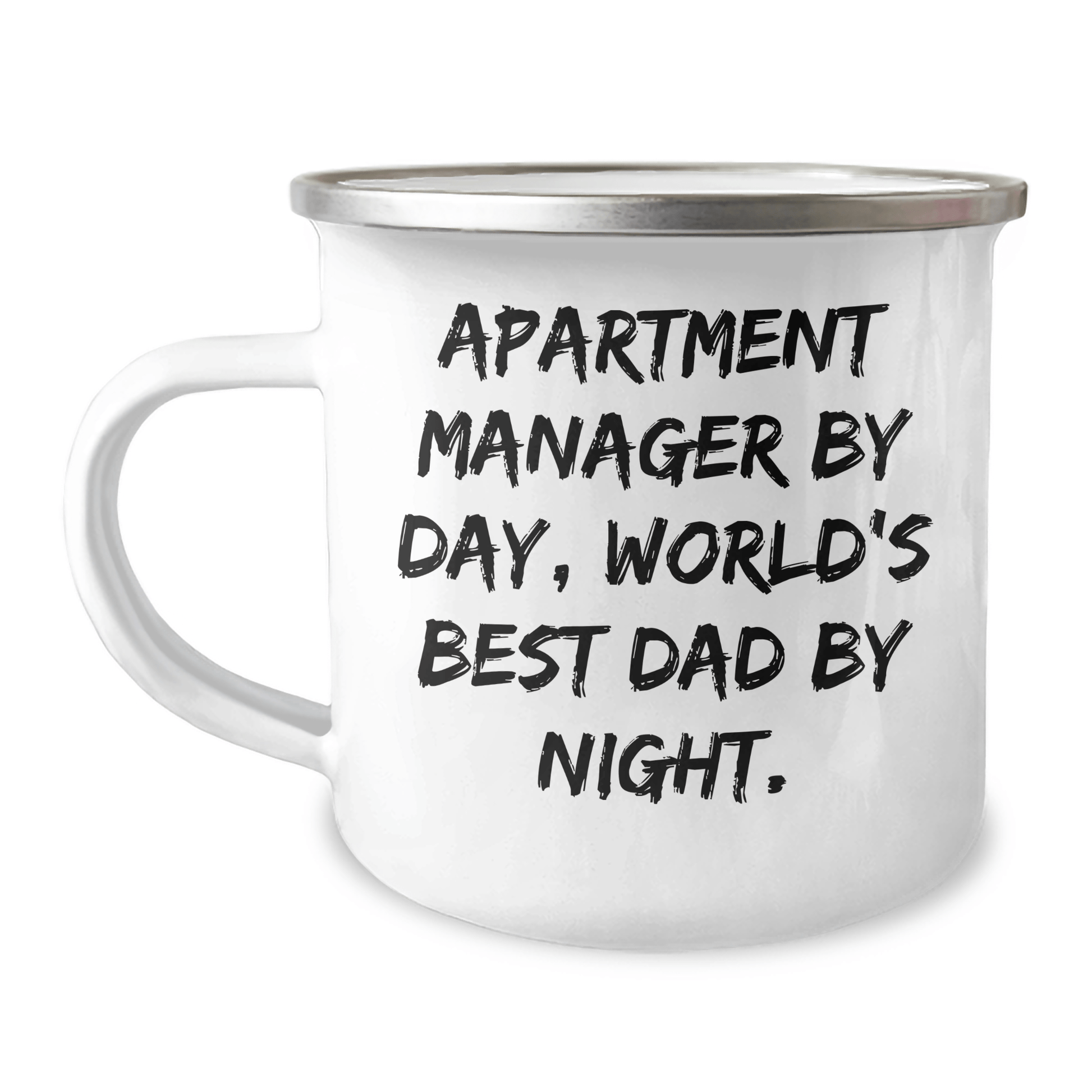 Are you an Apartment Manager by day, looking for a unique gift for a special occasion like graduation? Look no further! This Camping Mug is the perfect way to showcase your dual identity as a World's Best Dad By Night. With its 12 oz capacity and stainless steel with enamel finish, this mug is both sturdy and stylish.
