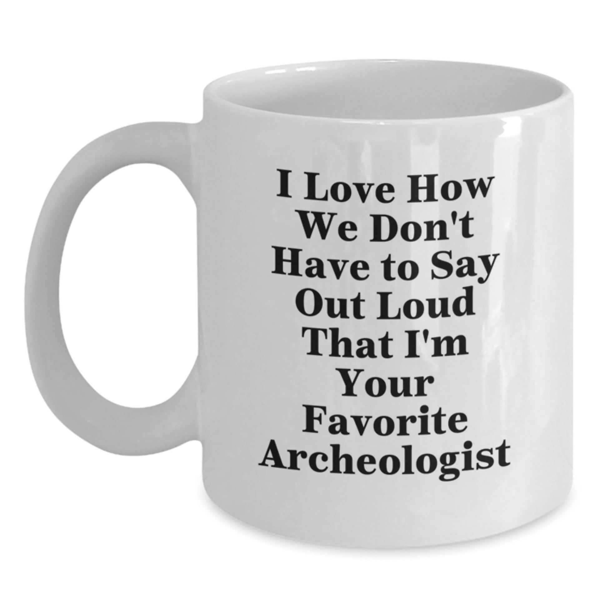 Are you an archeology enthusiast or looking for a unique gift for an archeologist? Look no further! This funny quote on a white coffee mug is the perfect way to show your appreciation for their work. The quote 'I Love How We Don't Have To Say Out Loud That I'm Your Favorite Archeologist' is a hilarious and relatable sentiment that any archeologist will love. The mug is made from ceramic, microwave, and dishwasher safe, making it easy to use and clean. It's the ideal gift for graduation, birthdays, or any occasion. So, send this gift to your favorite archeologist and show them how much you care. Don't miss out on this opportunity to make their day!