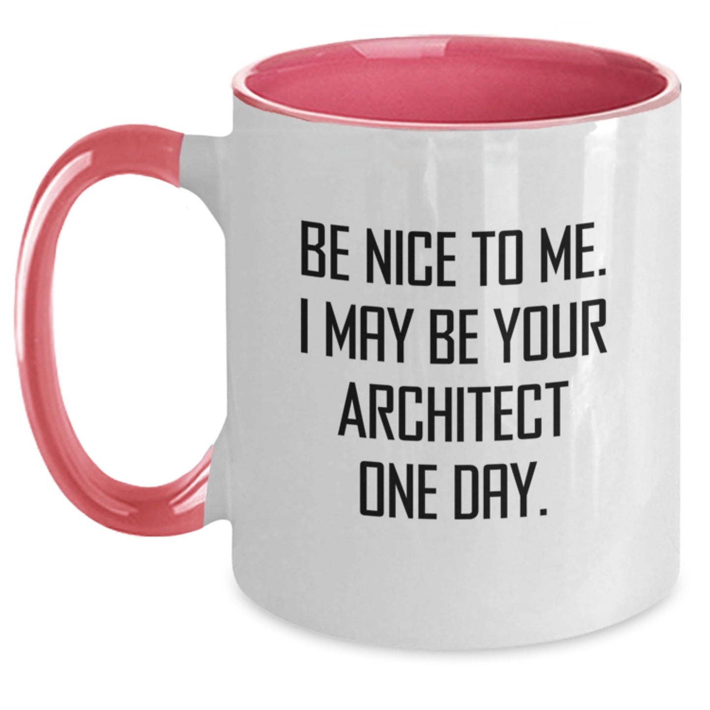 - Order this Two Tone Coffee Mug today and make someone's day a little brighter - 'Be Nice To Me. I May Be Your Architect One Day.'