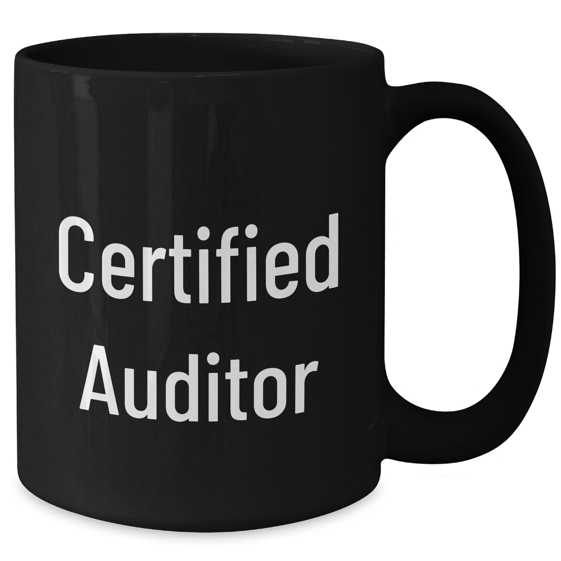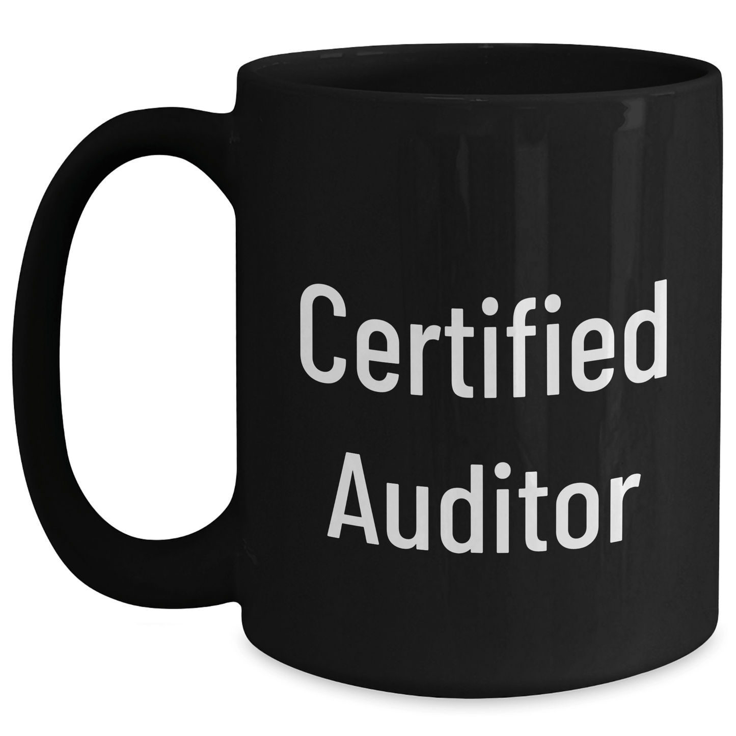 - Make a statement with our 'Certified Auditor' quote on this premium black coffee mug, perfect for the special auditor in your life, and enjoy a warm cup of coffee or tea on-the-go. The ceramic material ensures durability and longevity, while the 11oz or 15oz capacity is ideal for your morning routine., Perfect for Father's Day or any occasion, this thoughtful gift is sure to delight.