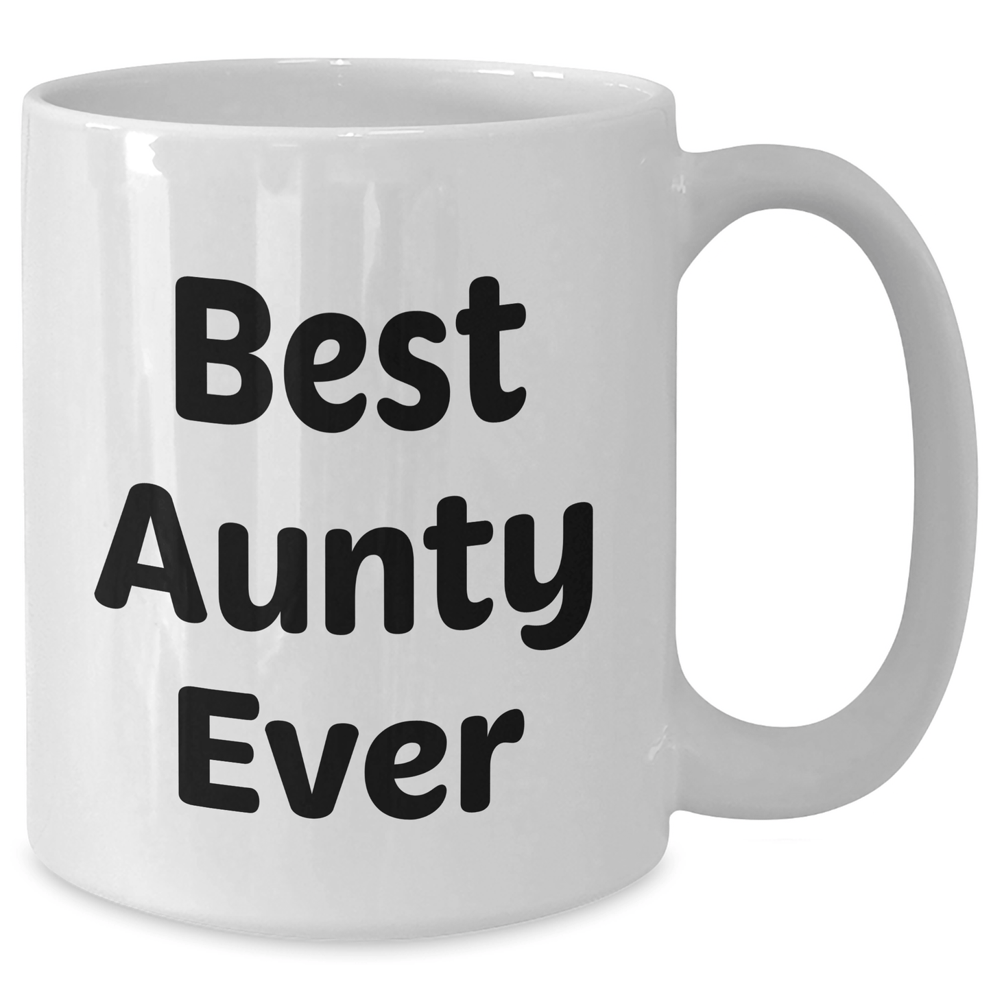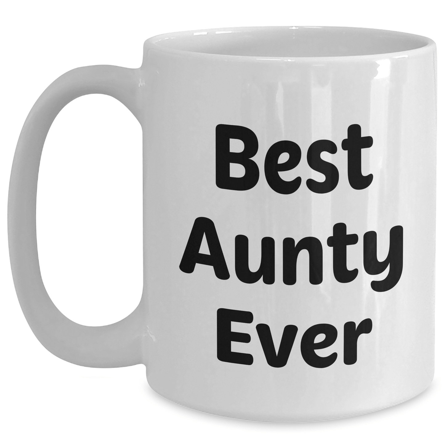 - This funny coffee mug is the perfect way to express your gratitude for your amazing Aunty. With a quote that says 'Best Aunty Ever', this mug is sure to bring a smile to their face.