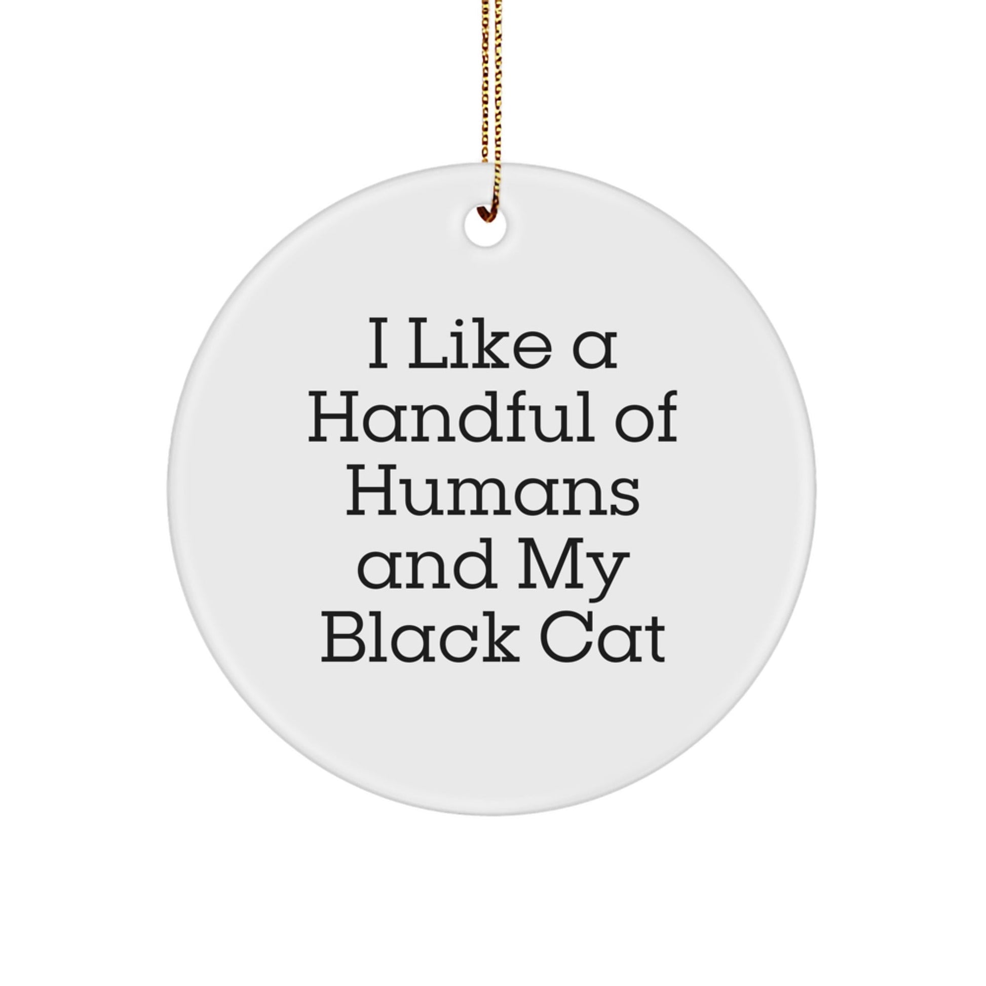 Imagine the joy and laughter it will bring to the Black Cat lover in your life. This Circle Ornament is a thoughtful and unique gift that will show you care. So why wait? Get your 'I Like A Handful Of Humans And My Black Cat' Circle Ornament today and make this Christmas one to remember!