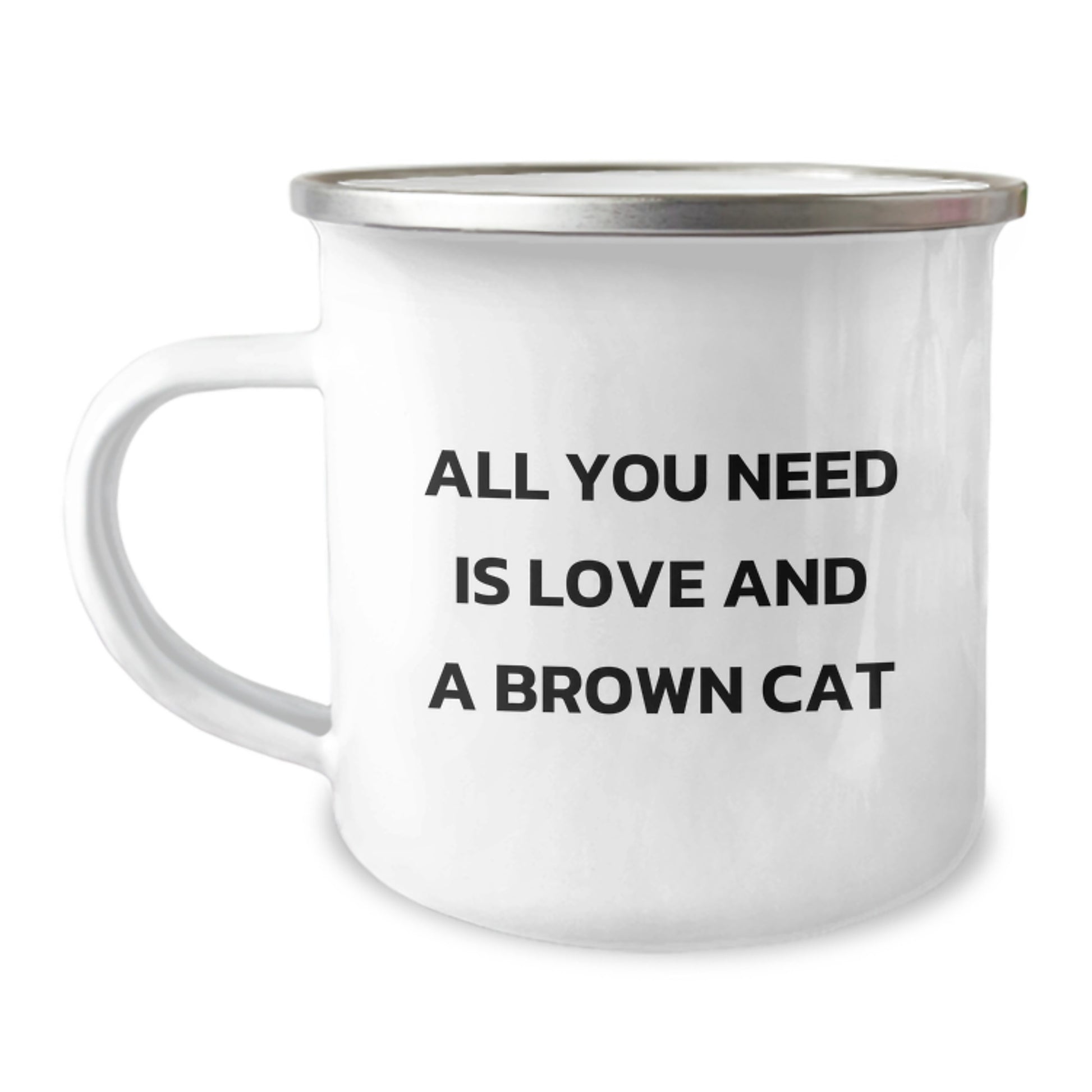 Are you a Brown Cat enthusiast or looking for a unique gift for a Brown Cat lover? This camping mug is the perfect way to show your love and appreciation for these adorable creatures. With its funny quote 'All You Need Is Love And A Brown Cat', this mug is sure to bring a smile to anyone's face.