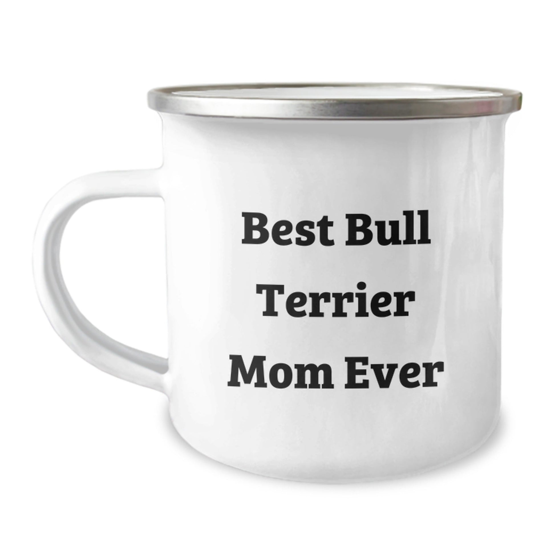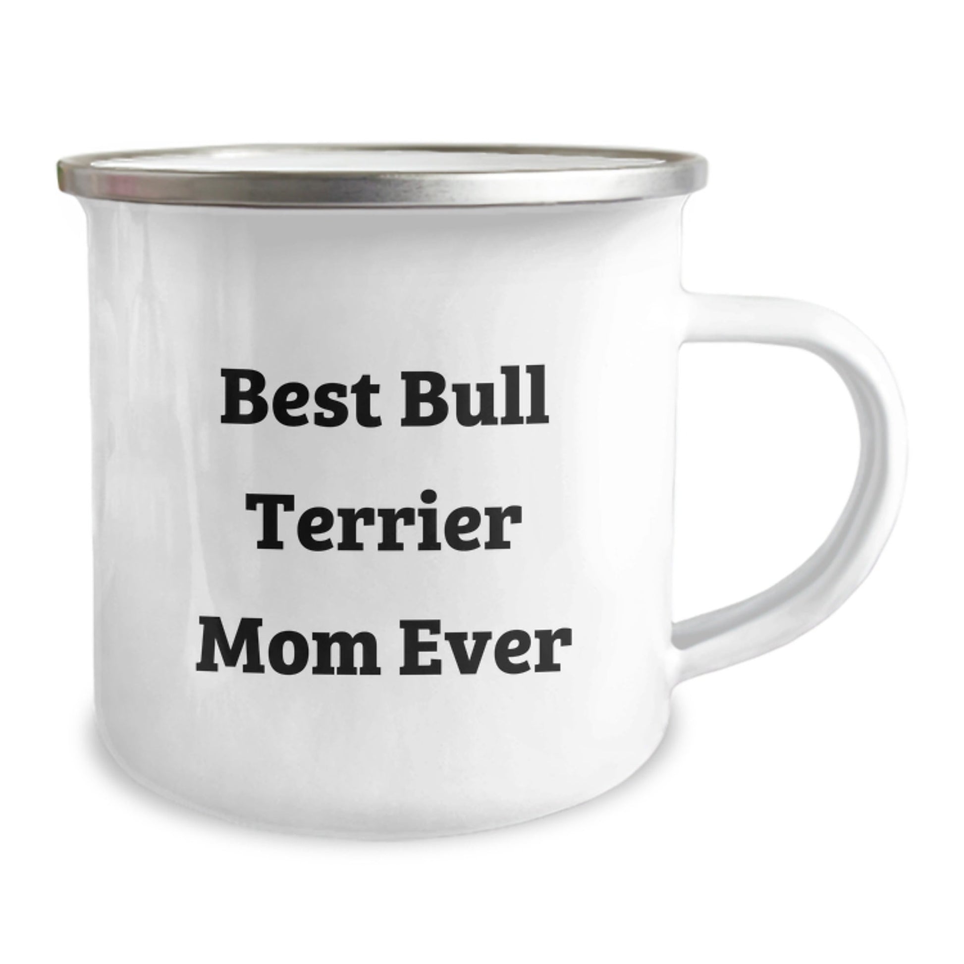 If you're a Bull Terrier Dog enthusiast or know someone who is, this Camping Mug is the ideal gift for them. The quote 'Best Bull Terrier Mom Ever' is a funny and cute way to show your love and appreciation for your favorite Bull Terrier Dog. Whether you're celebrating a birthday or just want to show your friend or family member how much you care, this mug is a great way to do so. The stainless steel with enamel finish is sturdy and easy to clean, and the permanent printing won't fade after washing. So why wait? Get this unique gift for the Bull Terrier Dog mom in your life today!