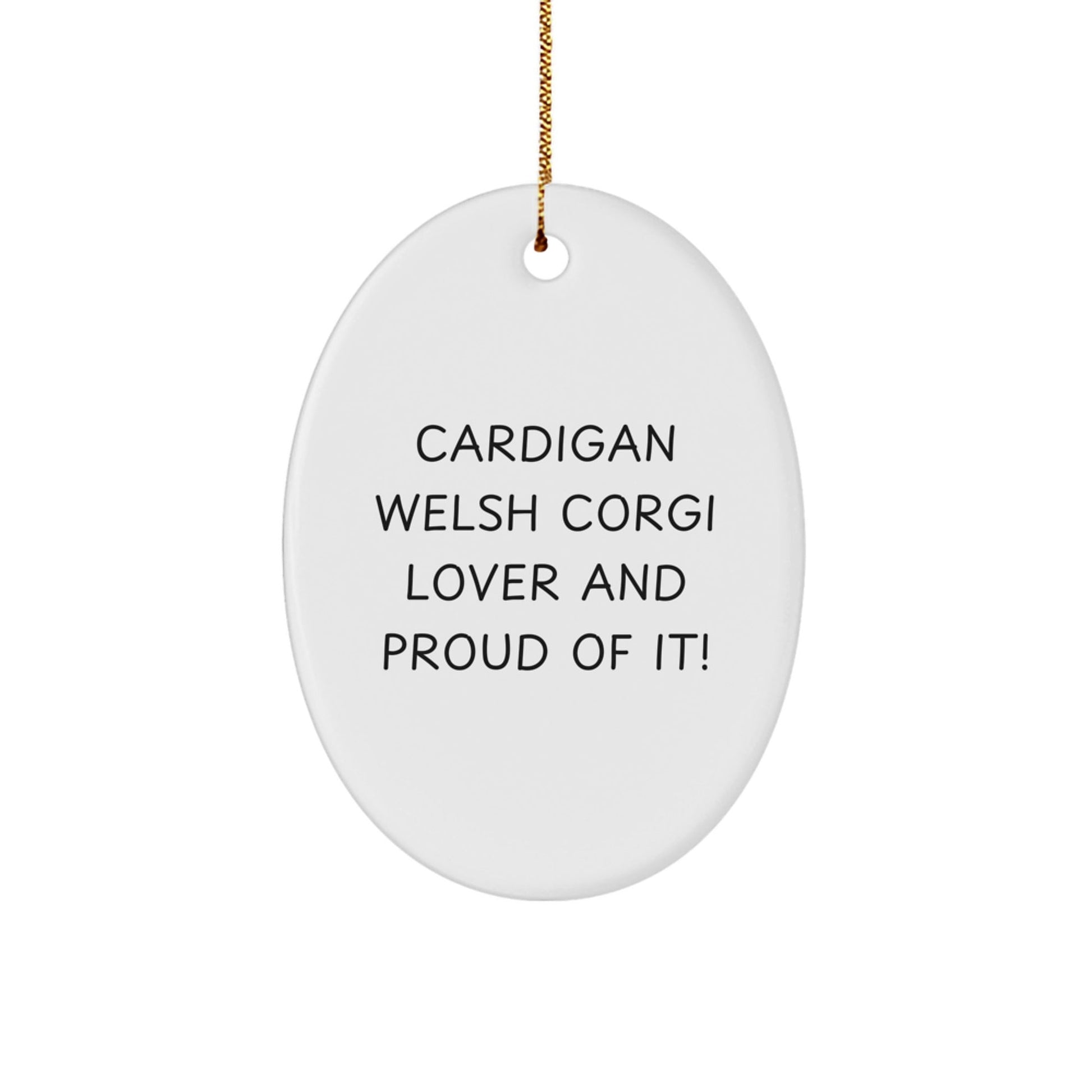 Are you a Cardigan Welsh Corgi Dog enthusiast or looking for a unique gift for a friend who loves these adorable dogs? This oval ornament is the perfect way to show your love and appreciation. The vibrant colors and funny quote 'Cardigan Welsh Corgi Lover And Proud Of It!' will make it a standout on any Christmas tree or in any room. As a gift, it's sure to bring a smile to the face of any Cardigan Welsh Corgi Dog lover. Whether you're buying for a friend, family member, or coworker, this ornament is a thoughtful and personalized present. And with its lightweight and sturdy design, it's perfect for households with children or pets. So why not spread some holiday cheer and get your Cardigan Welsh Corgi Dog Oval Ornament today?