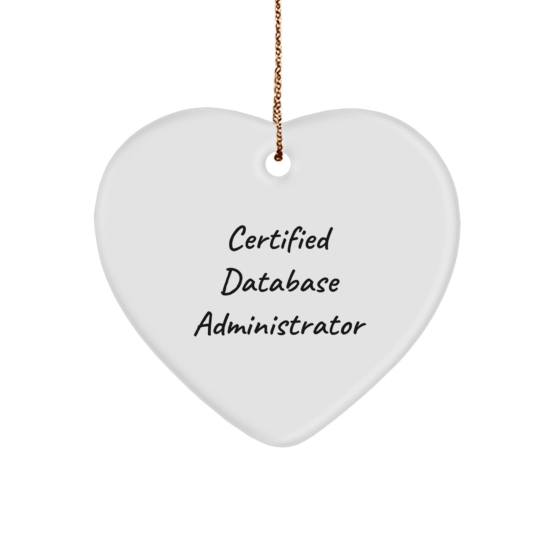 Are you looking for a unique gift for your certified database administrator friend or family member? Look no further! This funny 'Certified Database Administrator' heart ornament is a thoughtful and humorous addition to their office or home decor. With its vibrant colors and high-gloss finish, it's sure to bring a smile to their face. Whether you're shopping for Christmas gifts for men, women, or coworkers, this heartwarming ornament is the perfect way to show your appreciation for all their hard work. Make it a memorable holiday season with this thoughtful gift from you to them.