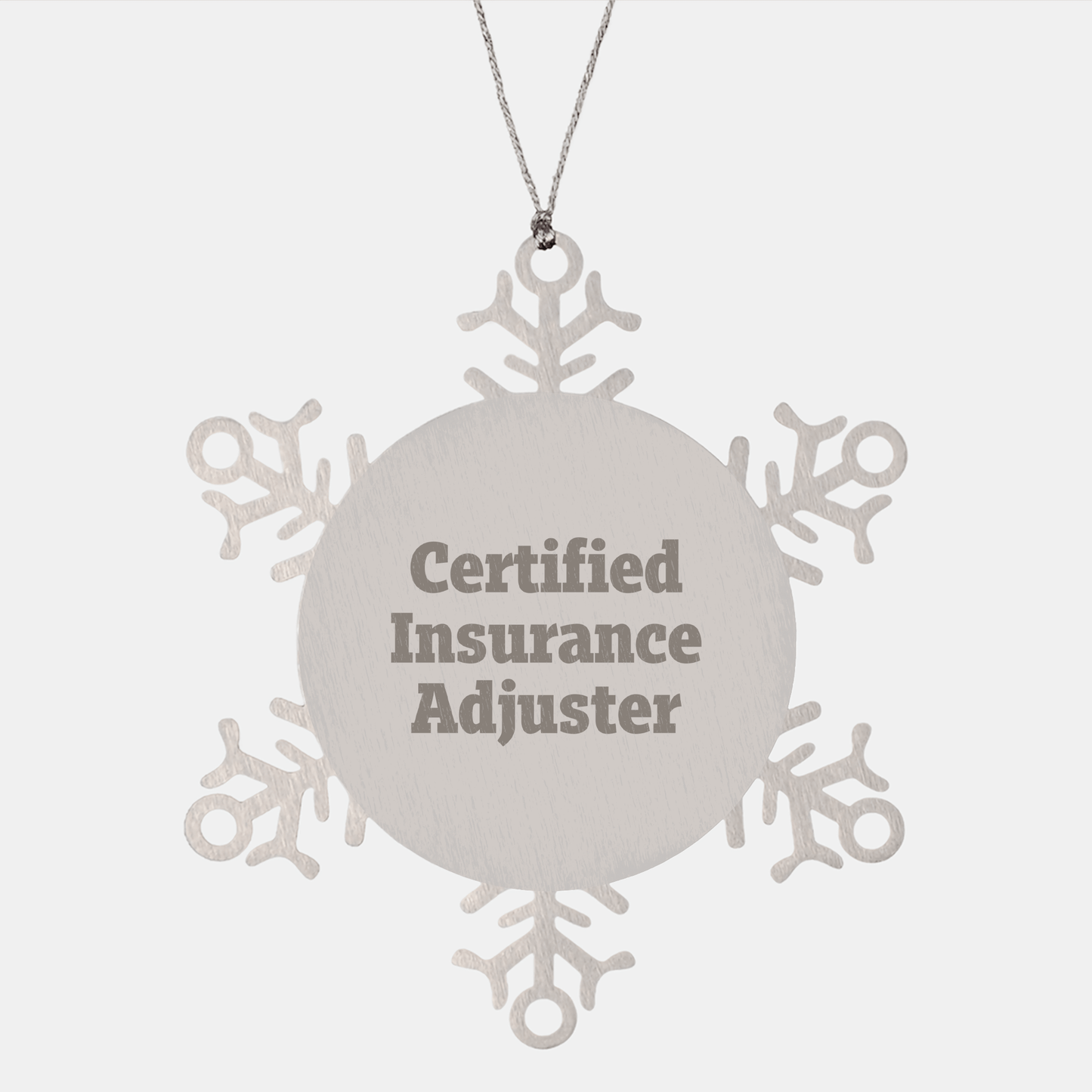 - Bring a touch of elegance to your holiday decor with this snowflake ornament, carefully designed to showcase the skills and expertise of certified insurance adjusters. Its premium stainless steel construction guarantees a long-lasting and safe ornament.