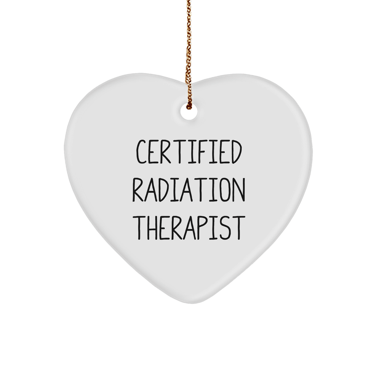 - This funny 'Certified Radiation Therapist' heart ornament is a great conversation starter and will add a touch of humor to your holiday decor.