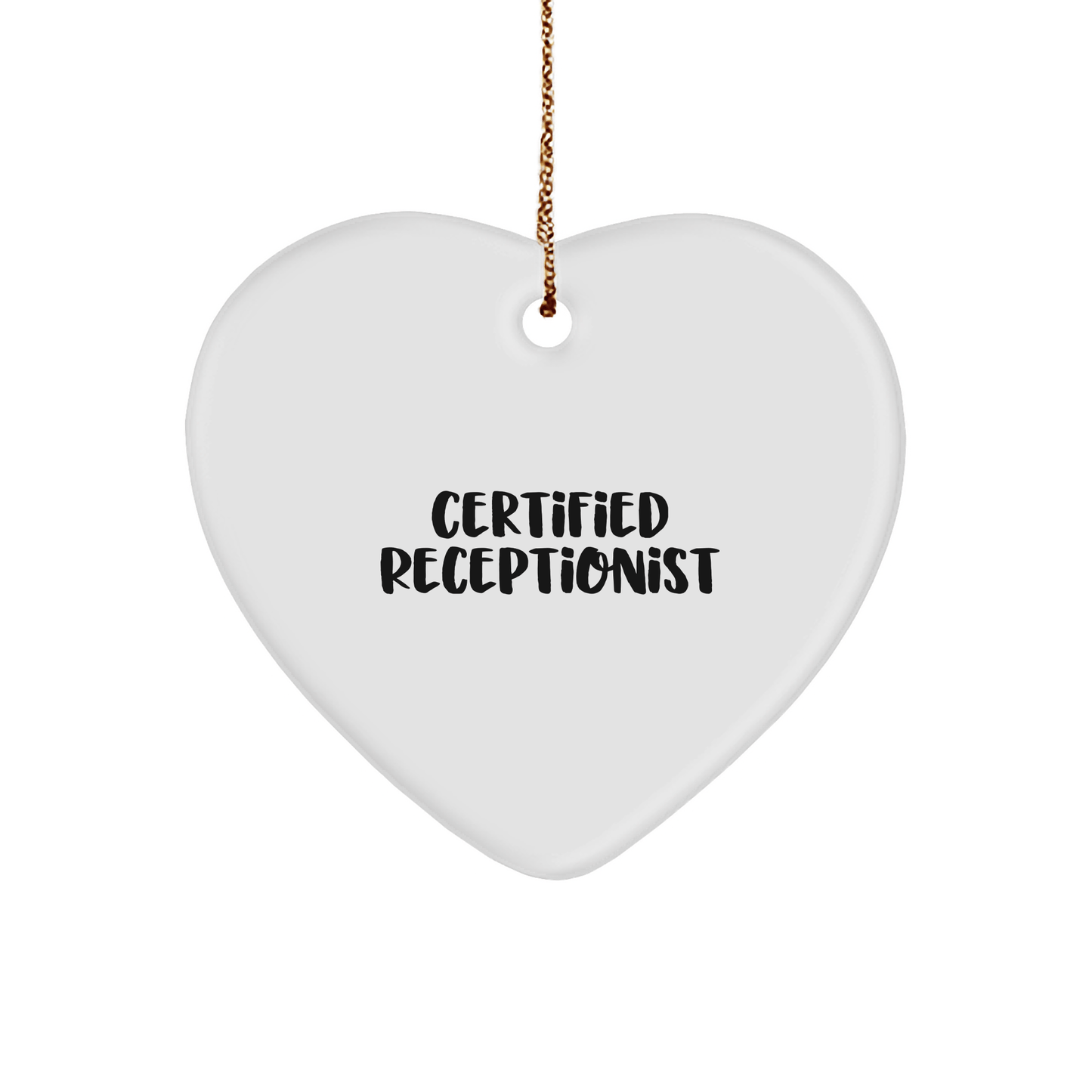 - Make a thoughtful and unique gift for your certified receptionist with this funny heart-shaped ornament