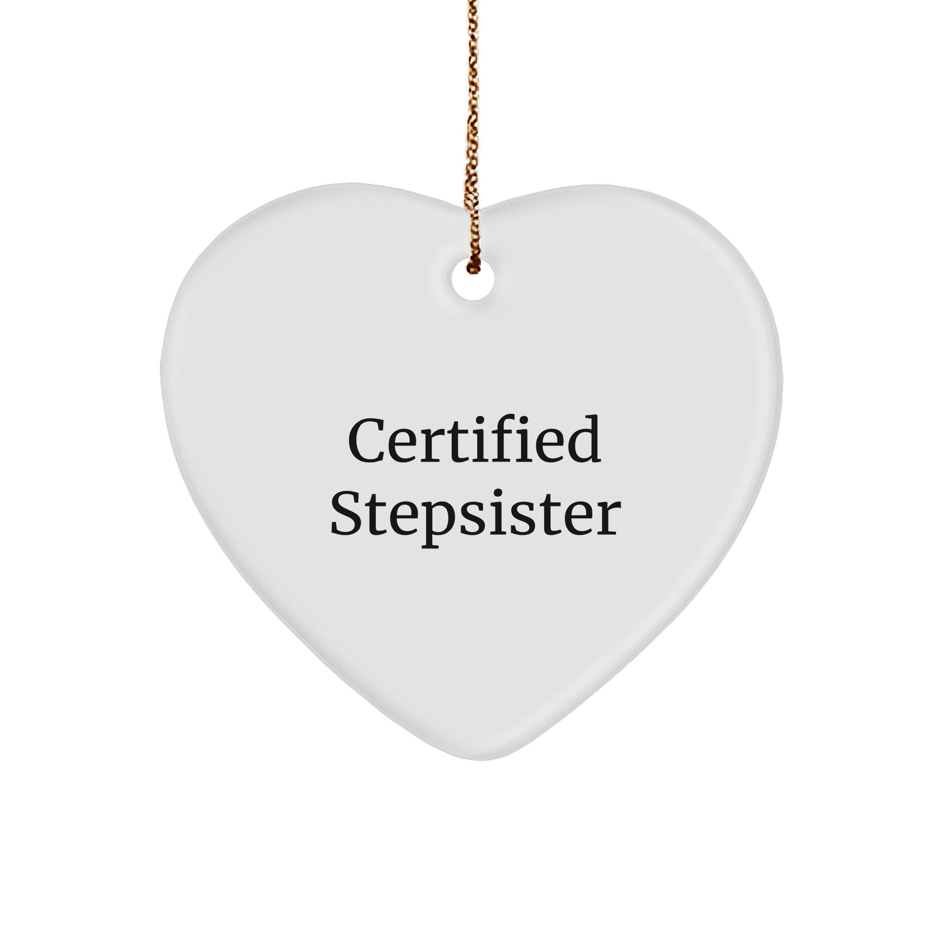 - This heart-shaped ornament features the hilarious quote 'Certified Stepsister' to bring a smile to your stepsister's face