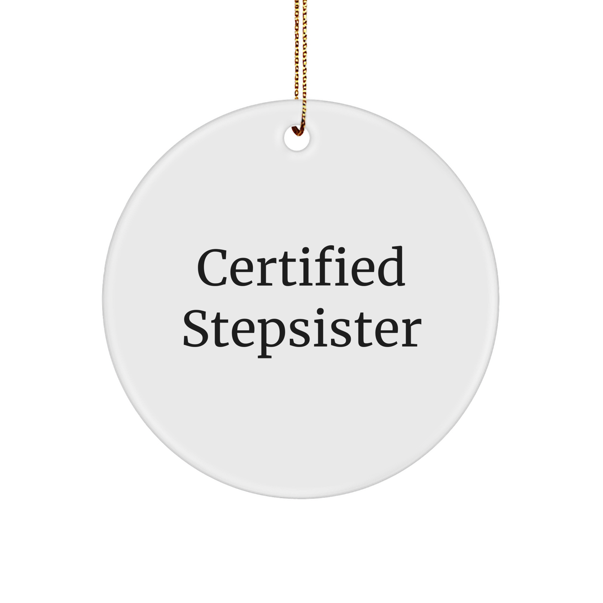 Whether you're a family member, friend, or coworker, our Certified Stepsister Quote Circle Ornament is the perfect way to show your Stepsister that you care. So why wait? Get your ornament today and make your Stepsister's Christmas season a little brighter!