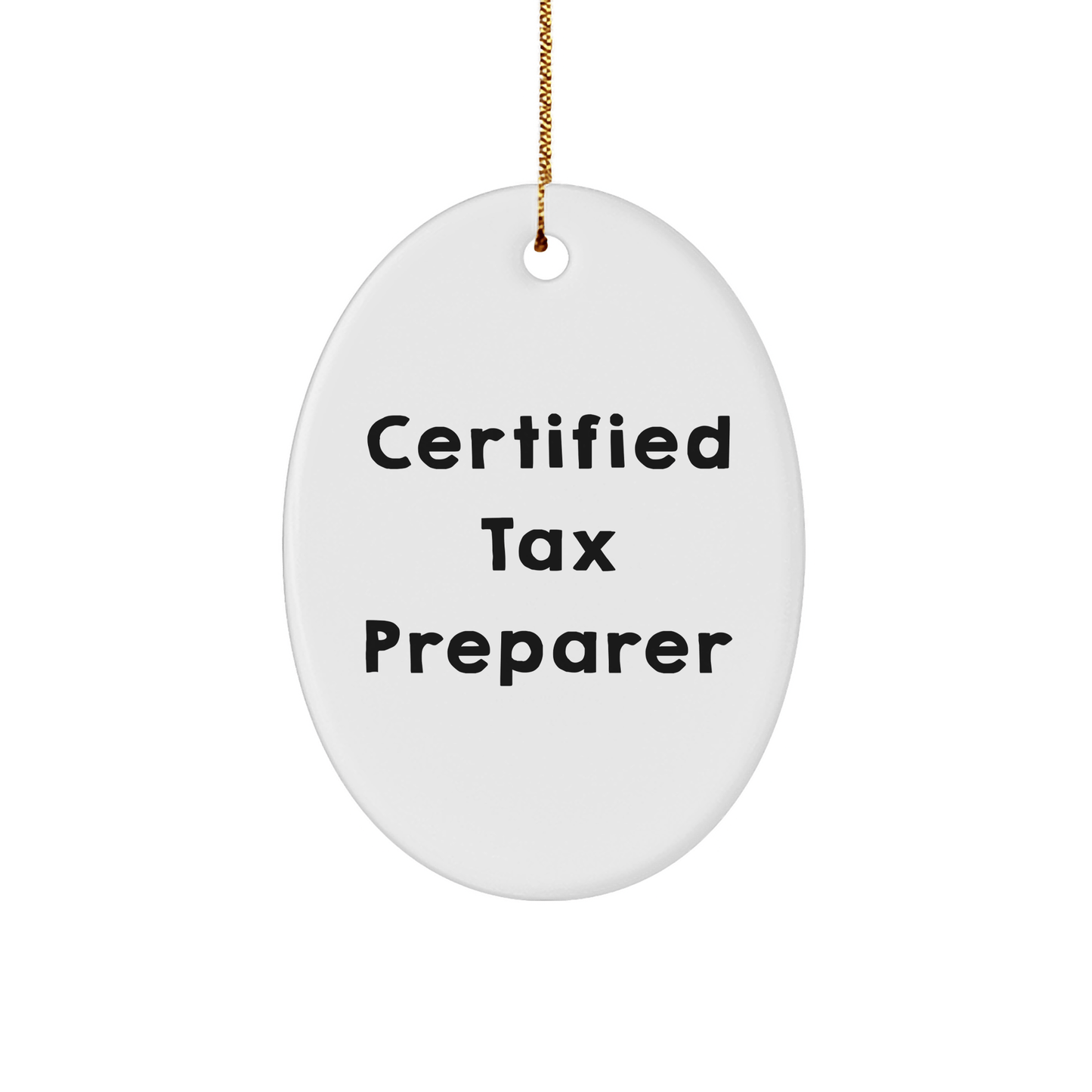 Get ready to brighten up your Tax Preparer's holiday season with this hilarious and unique Oval Ornament! As a certified tax preparer, they deserve a gift that's both functional and fun. This vibrant Ornament features a funny quote that's sure to bring a smile to their face. Made from sturdy MDF and high-gloss plastic, this Ornament is lightweight and resistant to breaking, making it perfect for households with children or pets. The festive gold cord makes it easy to hang, and the Sublimation printing process ensures bright, vivid colors that will last for years to come. Whether you're a friend, family member, or coworker, this gift is sure to be a hit! So why not show your appreciation for your Tax Preparer this holiday season with a gift that's both thoughtful and funny?