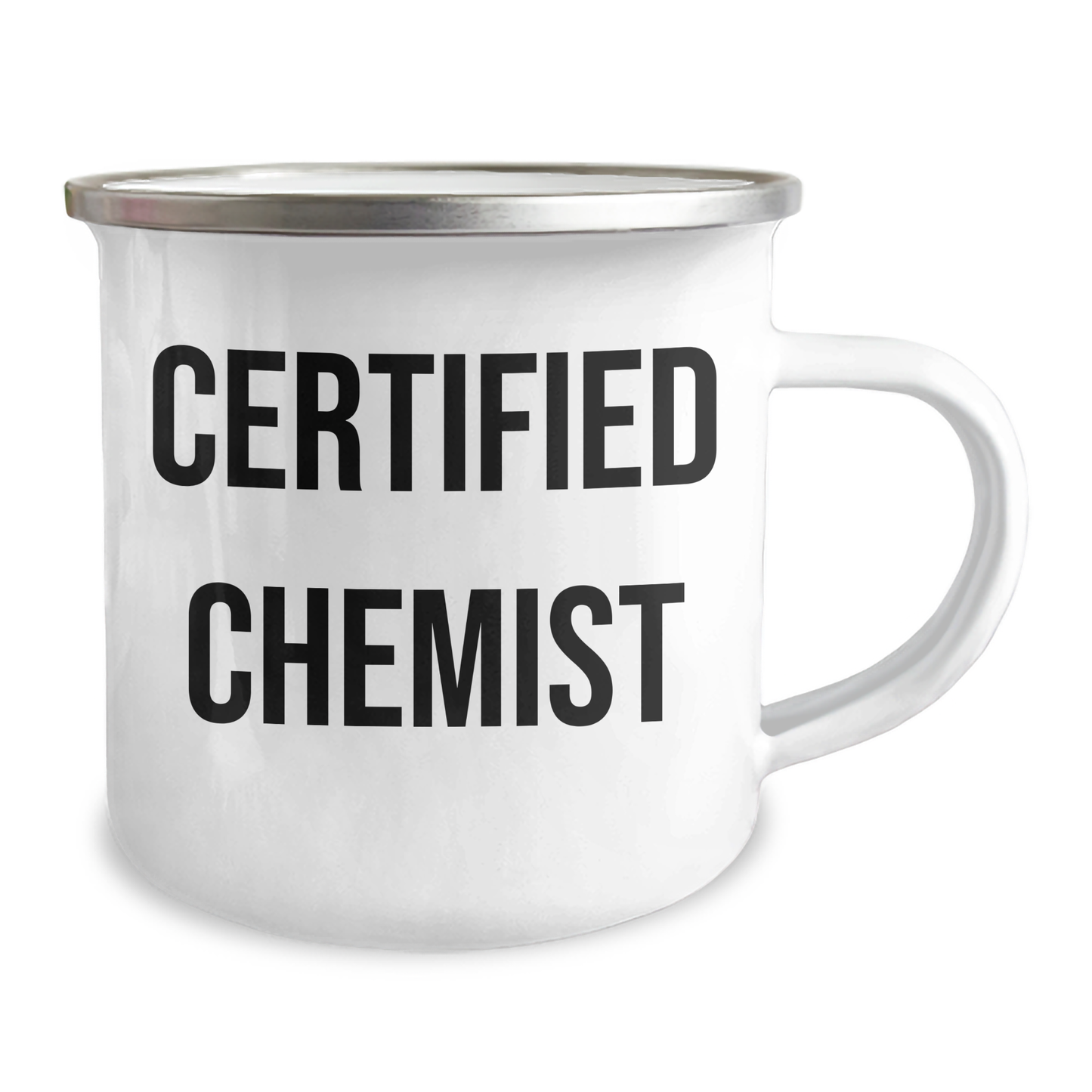 - Experience the perfect blend of science and adventure with our 'Certified Chemist' designed Camping Mug, crafted with 12 oz capacity, stainless steel with enamel finish, and permanent printing that won't fade after washing, ensuring a long-lasting and sturdy companion for your outdoor escapades, whether it's a Mother's Day camping trip with family or a solo escapade into the wilderness.