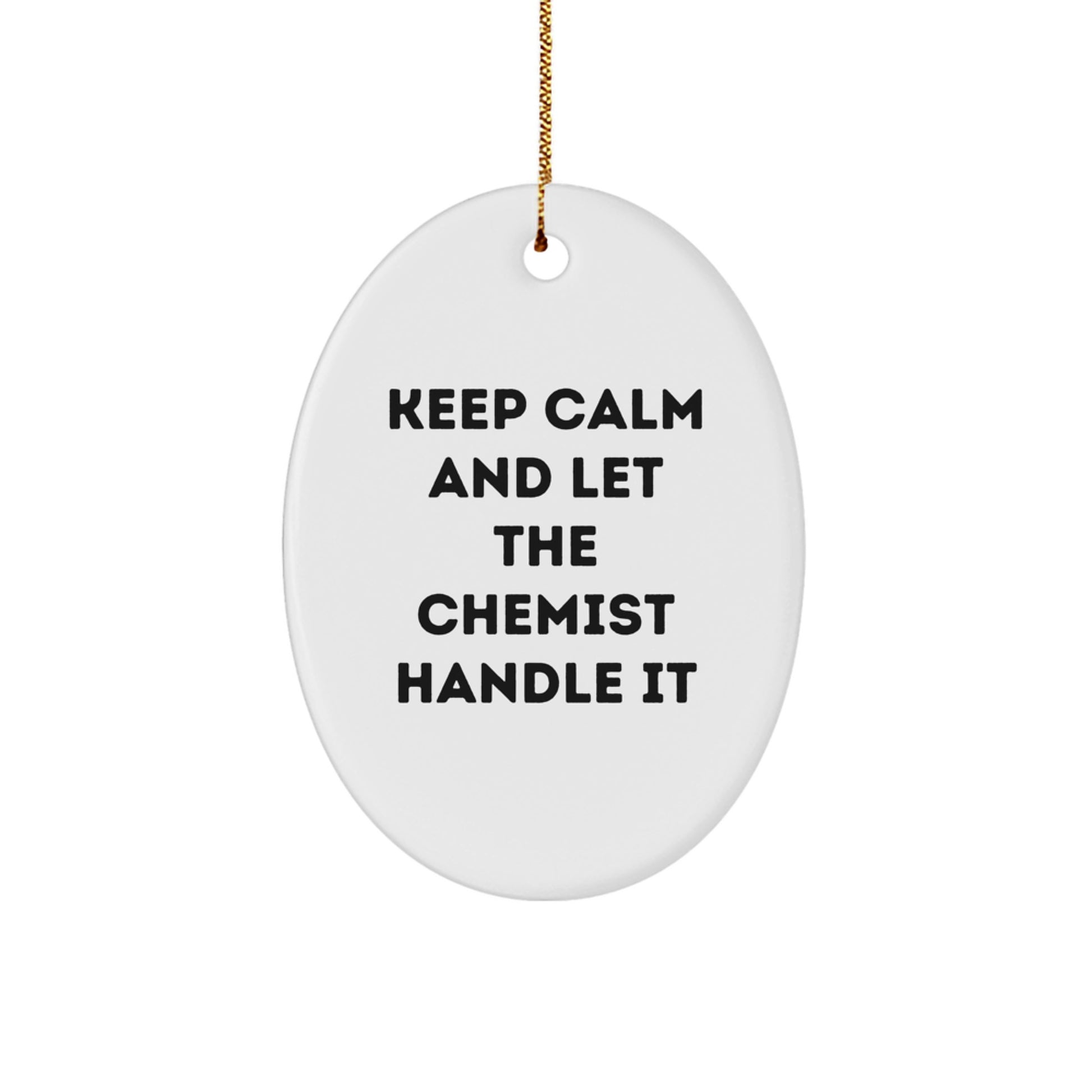 - Give your favorite Chemist a fun and quirky gift with our 'Keep Calm And Let The Chemist Handle It' Oval Ornament, a thoughtful and unique addition to any home or office.