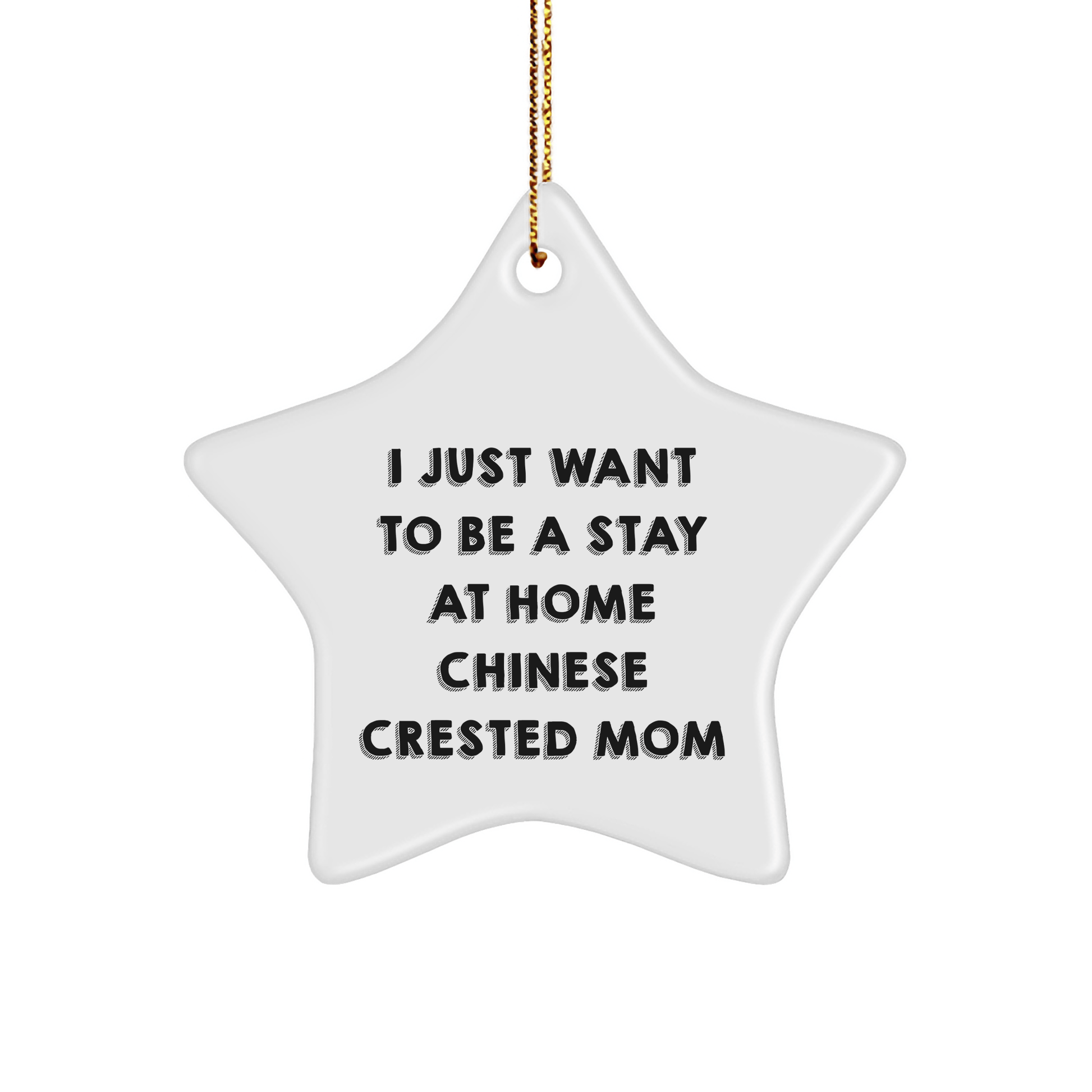 - Give the gift of a stay-at-home Chinese Crested Dog mom's dream this Christmas. This Star Ornament is the perfect way to show your love and appreciation for her and her furry friends.