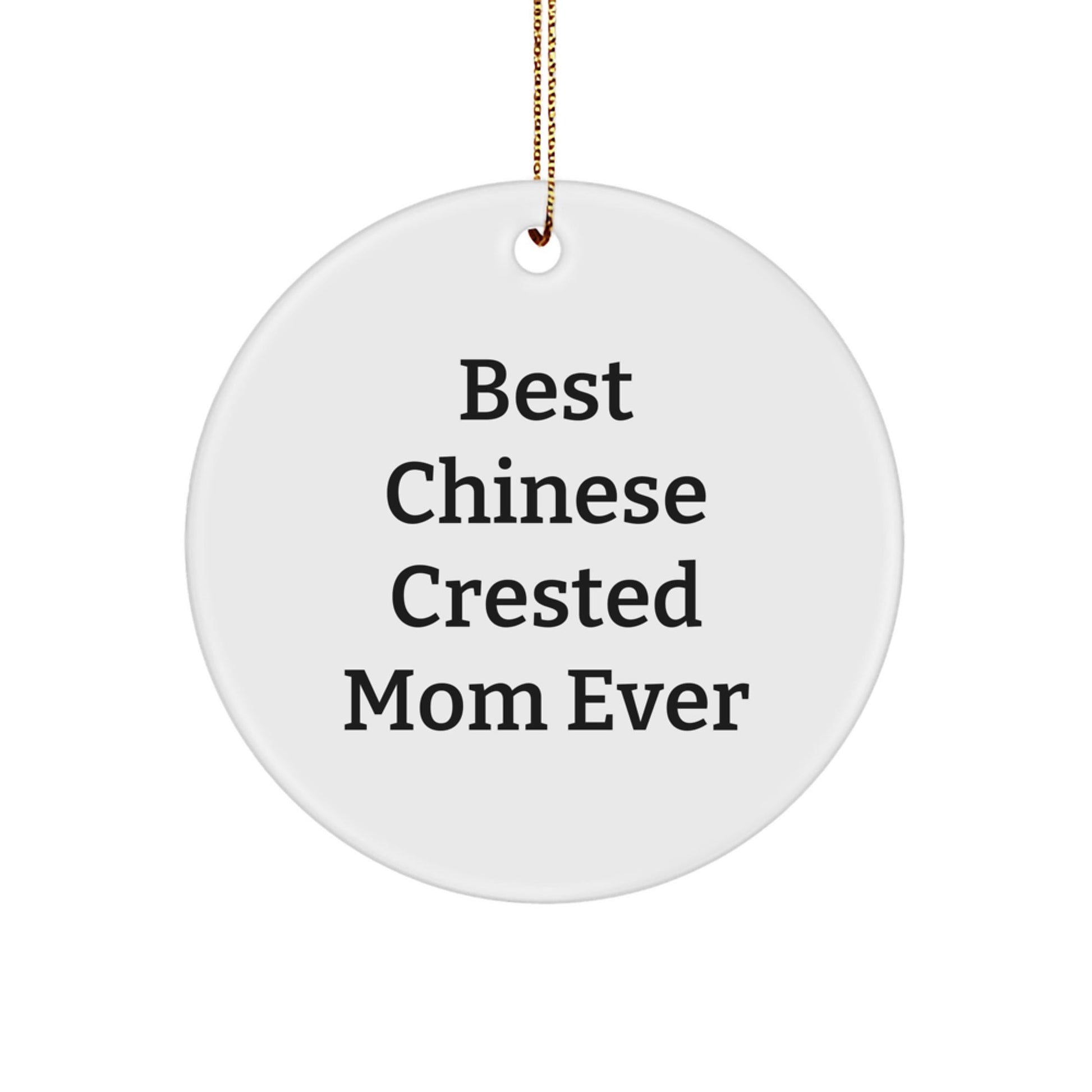 Are you a proud owner of a Chinese Crested Dog? Do you know someone who loves their Chinese Crested Dog? This Christmas, give them a thoughtful gift that will make them smile. Our Circle Ornament is a unique and personalized way to celebrate their love for their Chinese Crested Dog. With its vibrant colors and sturdy design, this ornament is sure to become a treasured keepsake. Whether you're a Best Chinese Crested Mom Ever or just a fan of these adorable dogs, our Circle Ornament is the perfect way to show your love and appreciation. So why wait? Get your Chinese Crested Dog Circle Ornament today and make this Christmas one to remember!