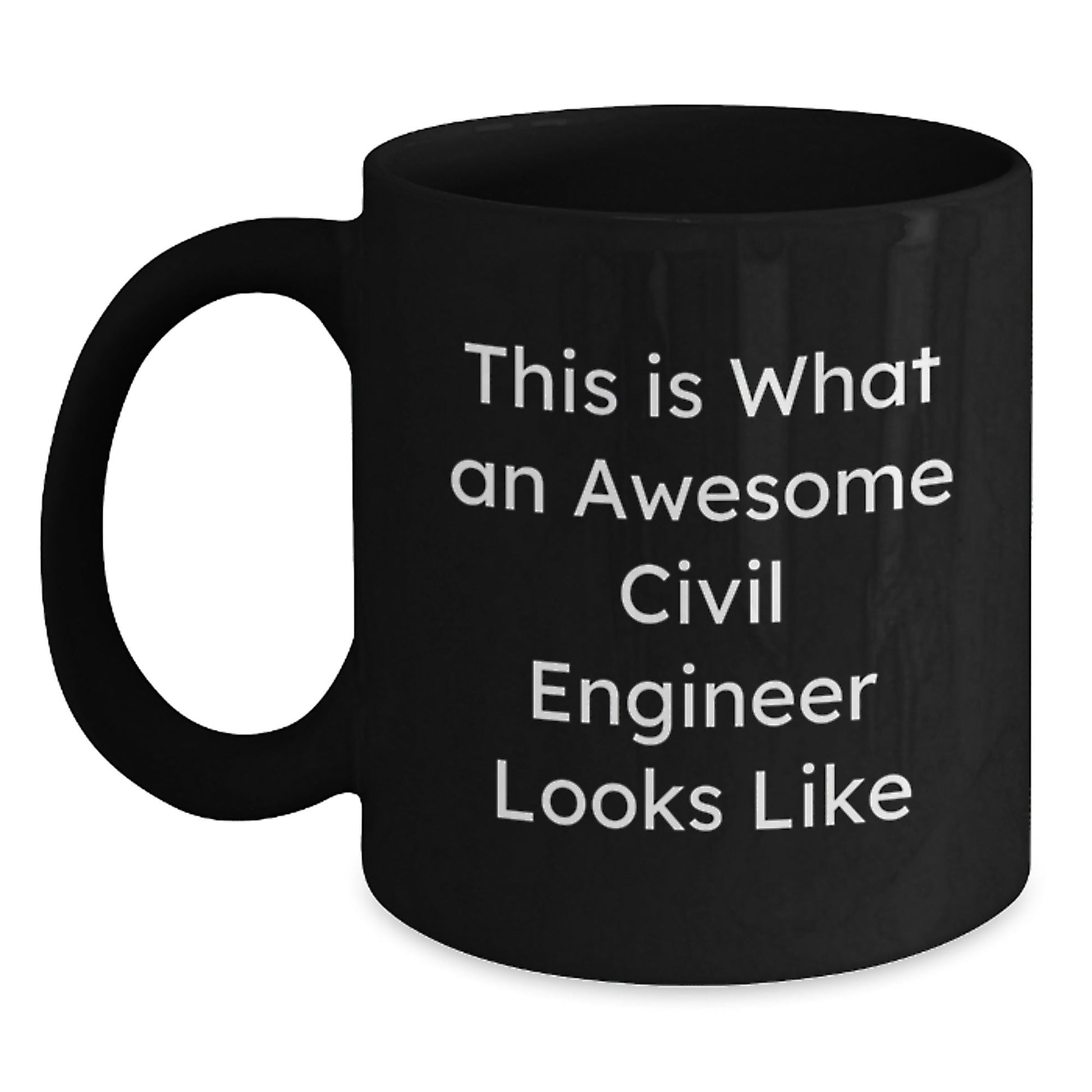 This unique black coffee mug is a ideal gift for civil engineers, especially on graduation day. It's a great way to show your appreciation and encouragement for their hard work and dedication. The quote 'This Is What An Awesome Civil Engineer Looks Like' is a humorous way to acknowledge their awesomeness.