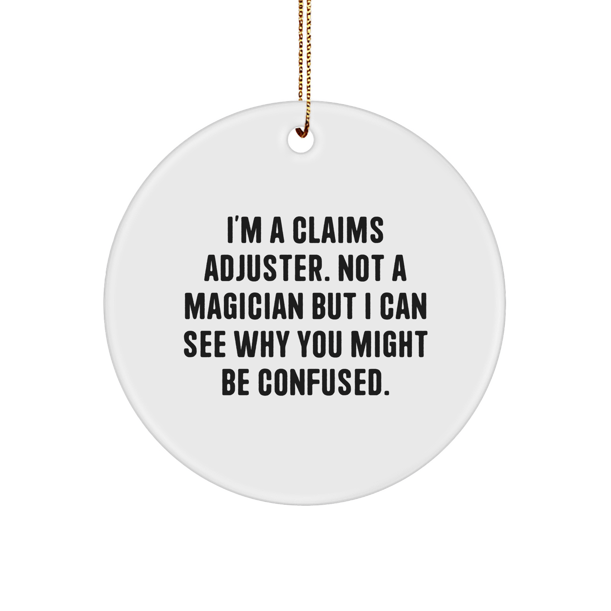 - Don't miss out and make this Christmas one to remember with a thoughtful gift for your favorite Claims Adjuster - 'I'm A Claims Adjuster' Circle Ornament.