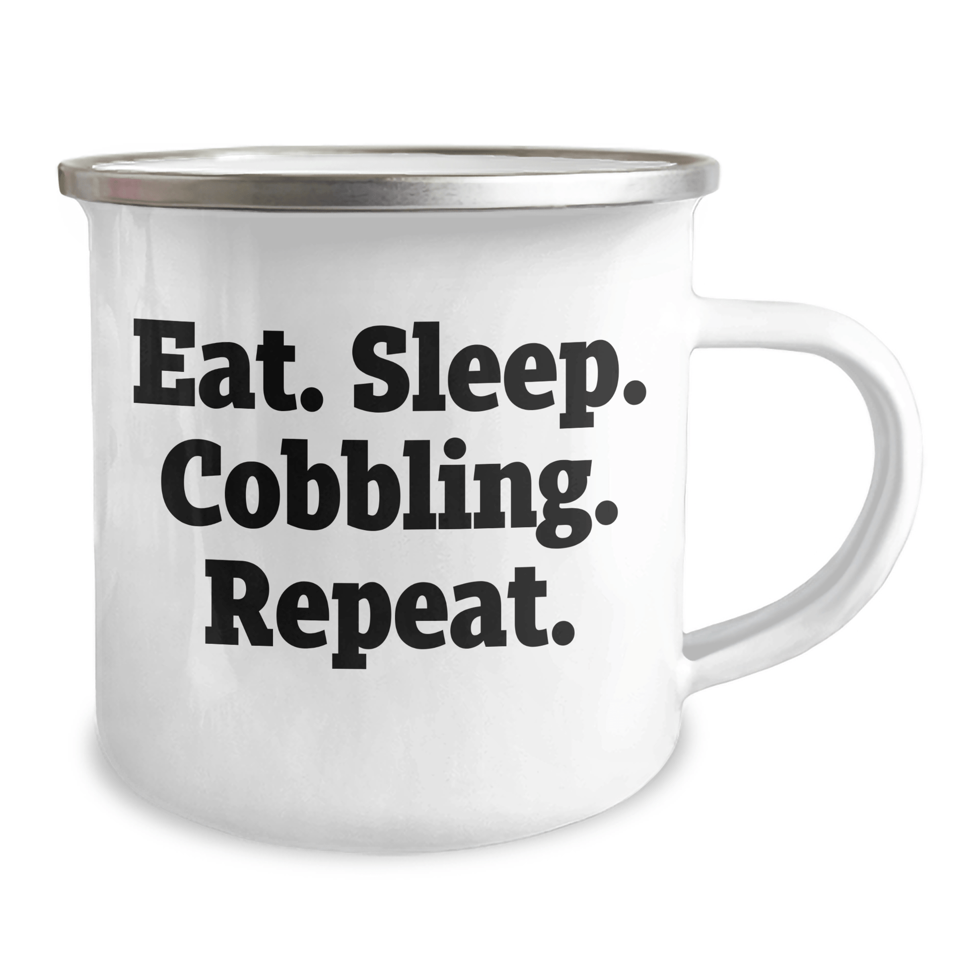 The quote 'Eat. Sleep. Cobbling. Repeat.' is a fun and modern take on the traditional 'Eat. Sleep. Repeat.' phrase, and is sure to bring a smile to the face of any Cobbling enthusiast. So why settle for a boring, generic gift when you can give something that truly shows you care?