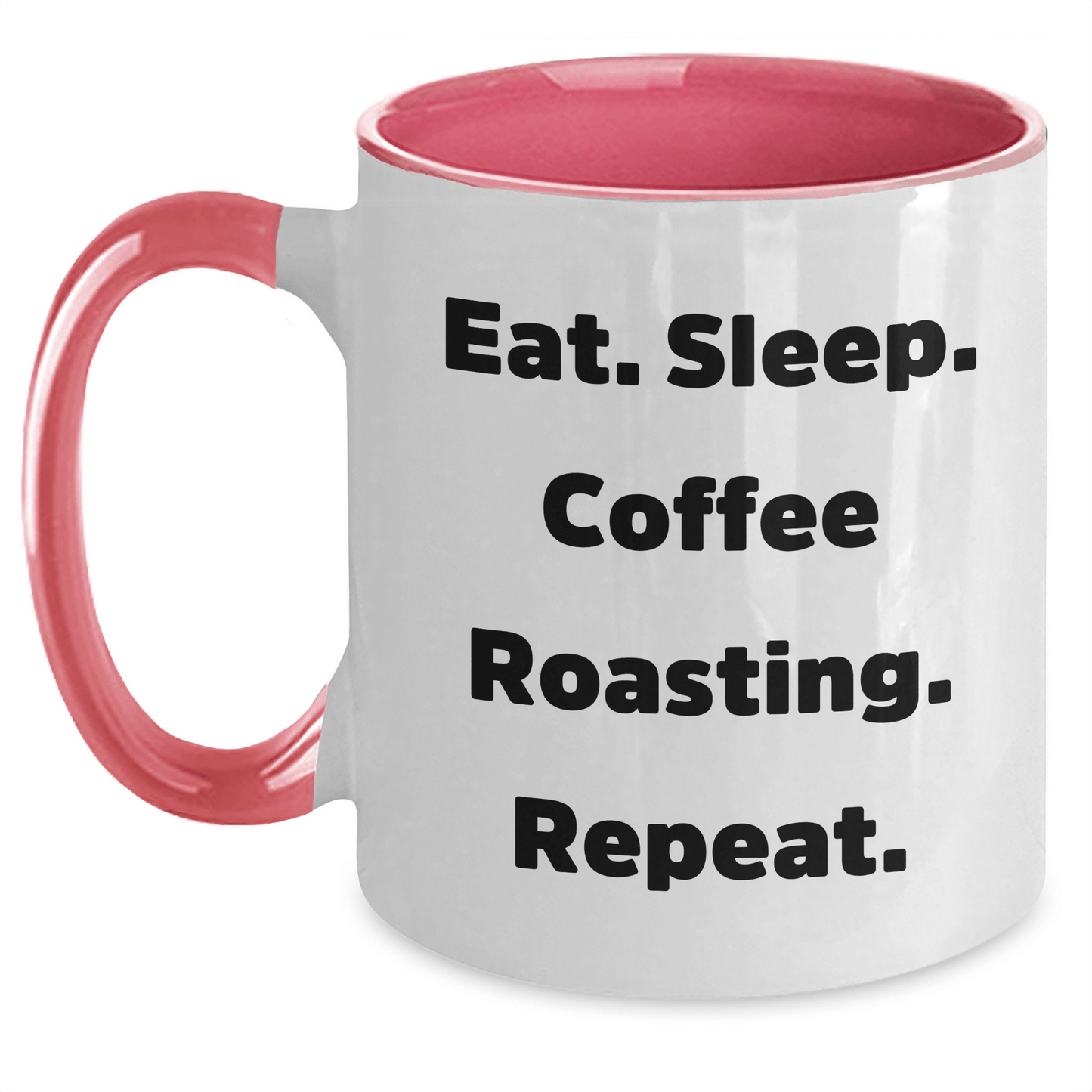 - 'Eat. Sleep. Coffee Roasting. Repeat.' - a mantra for coffee lovers everywhere! Our Two Tone Coffee Mug is designed to fuel your passion for coffee roasting, with a unique two-tone design that adds a touch of sophistication to any coffee break.