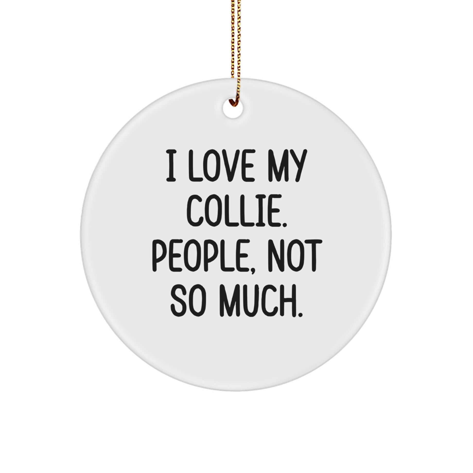 - Celebrate your love for 'I Love My Collie. People, Not So Much.' with this unique Circle Ornament, featuring a beautiful Collie Dog design that's sure to delight dog lovers. Perfect for decorating your home, giving as a gift, or adding to your holiday collection.