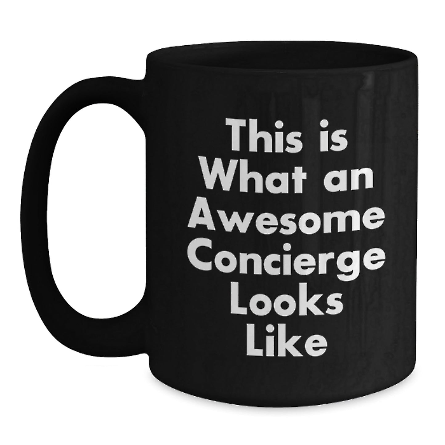 - Order this funny black coffee mug today and show your appreciation for the awesome concierge in your life. A thoughtful gift that will make them feel special and valued.