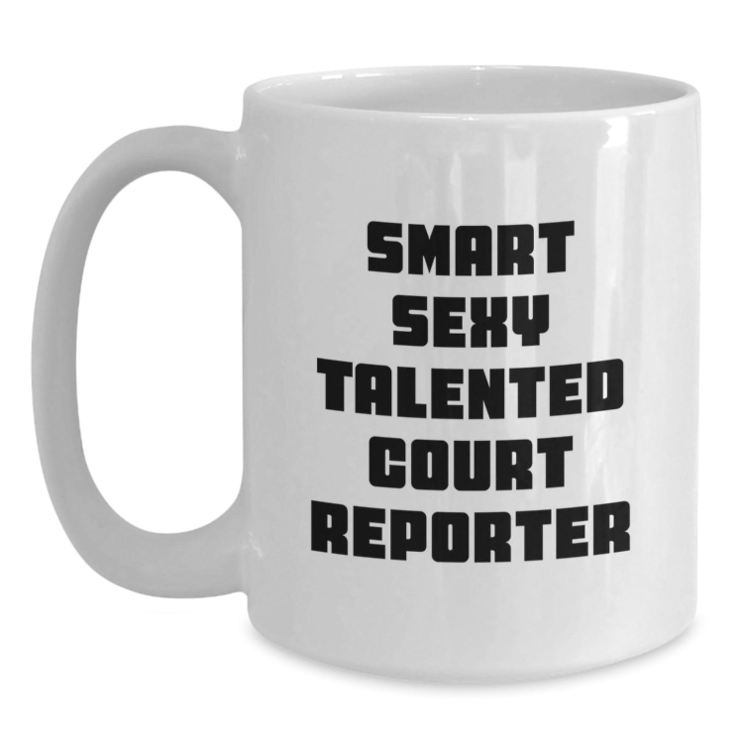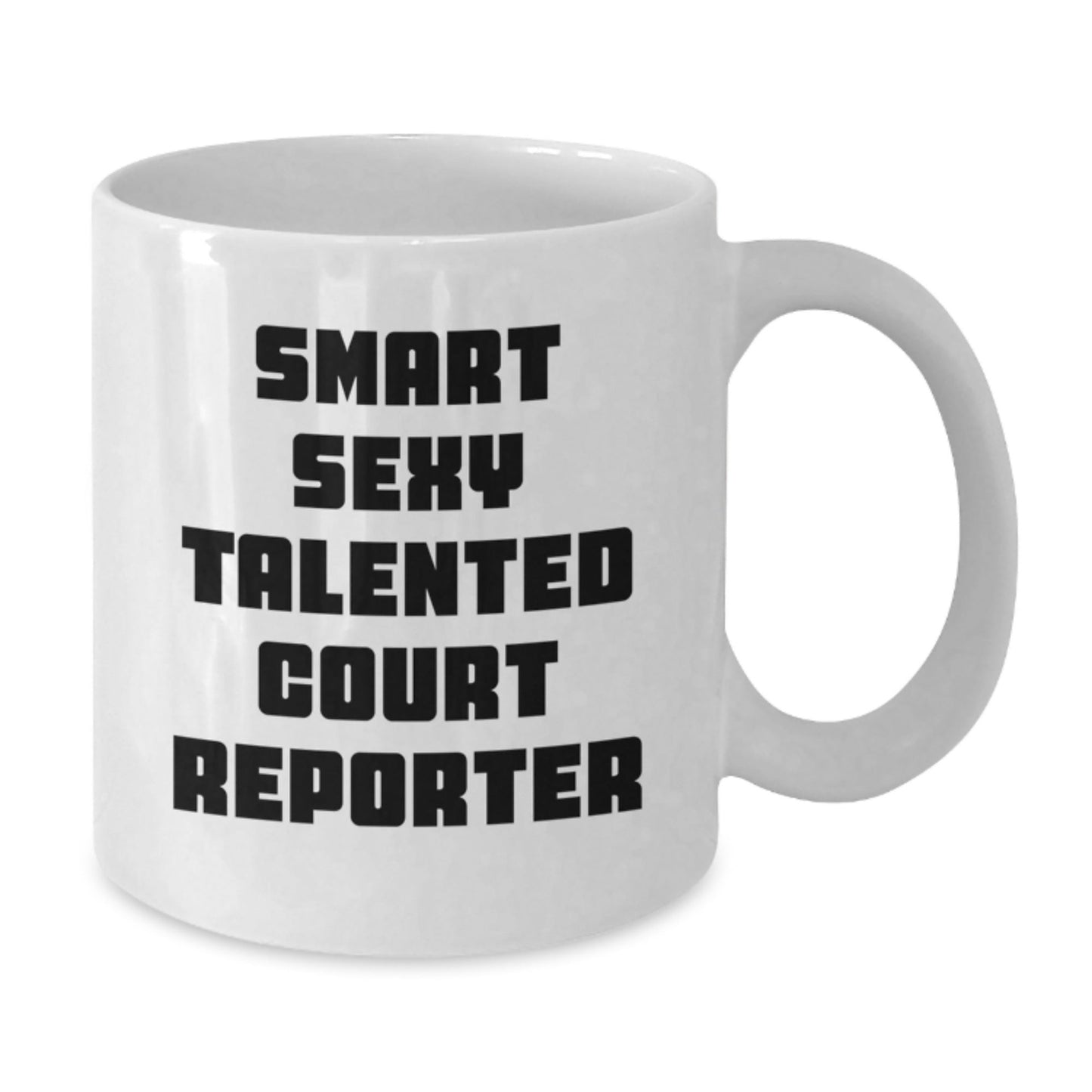 Are you looking for a unique gift for the smart, sexy, and talented court reporter in your life? Look no further! This white coffee mug with the humorous quote 'Smart Sexy Talented Court Reporter' is the perfect way to show your appreciation for their hard work and dedication. Made from ceramic, microwave, and dishwasher safe, this mug is both functional and sturdy. Whether you're a family member, friend, or coworker, this gift is sure to bring a smile to their face.