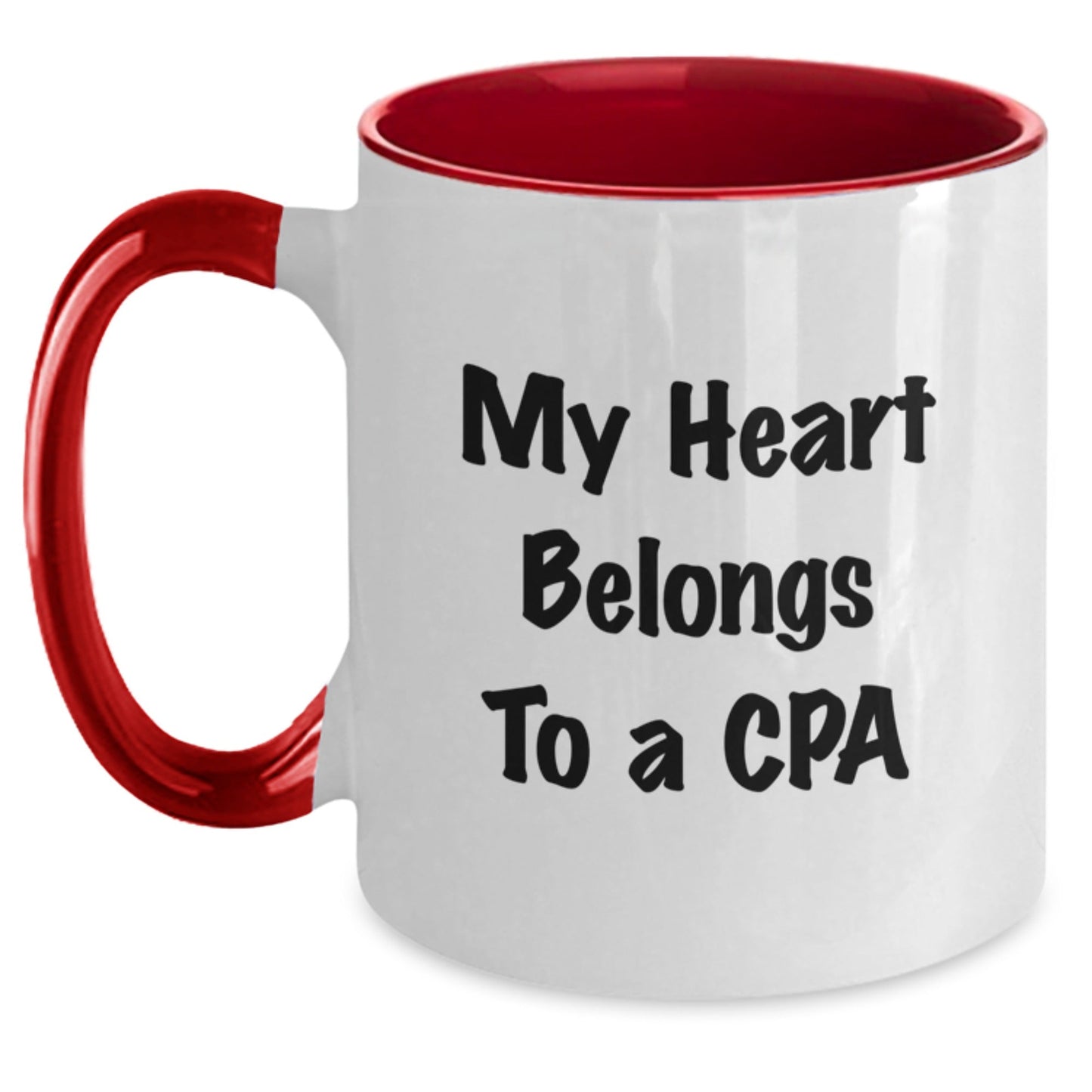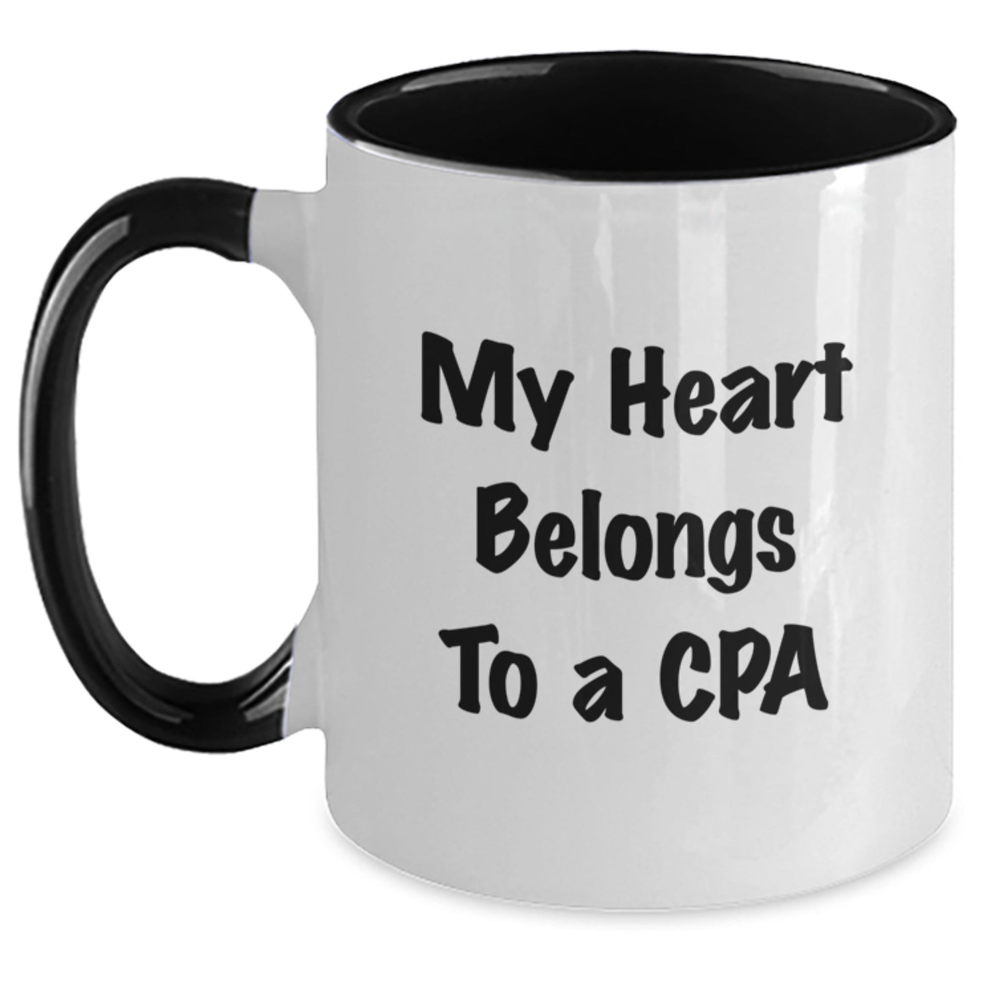 - This two tone coffee mug is the ideal gift for any CPA enthusiast, with its funny and humorous quote 'My Heart Belongs To A CPA'