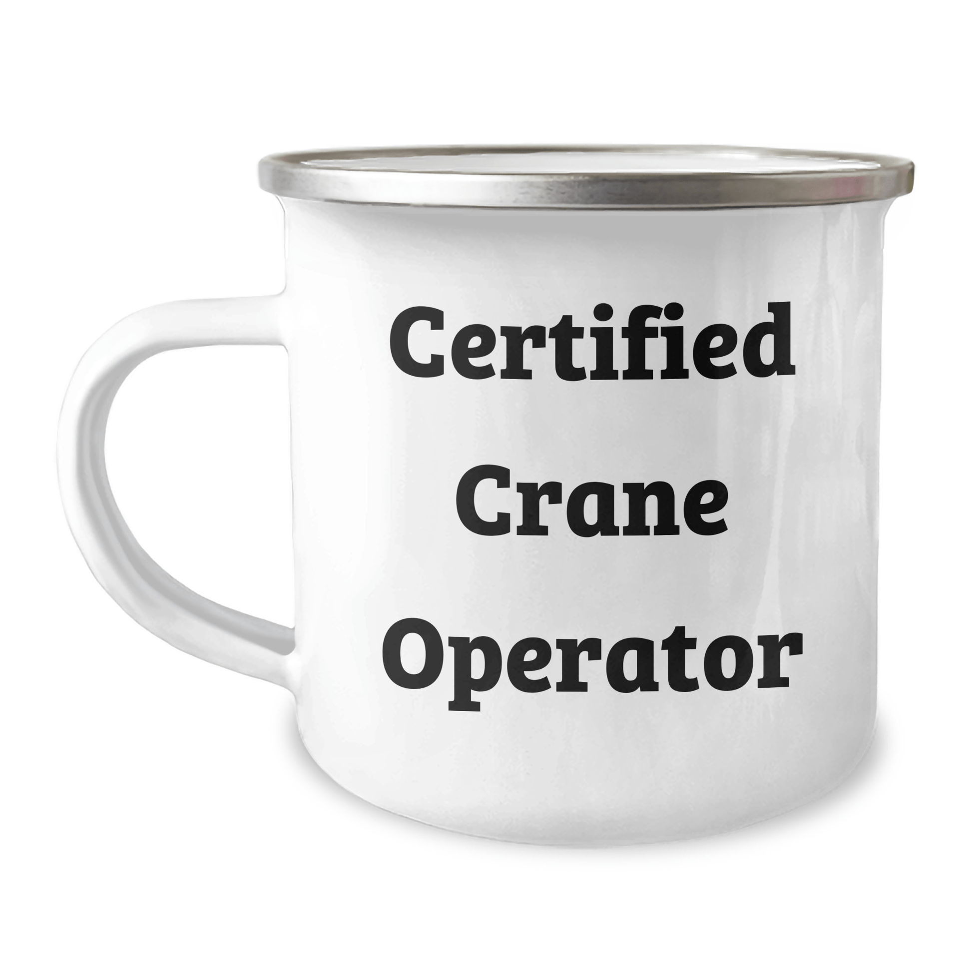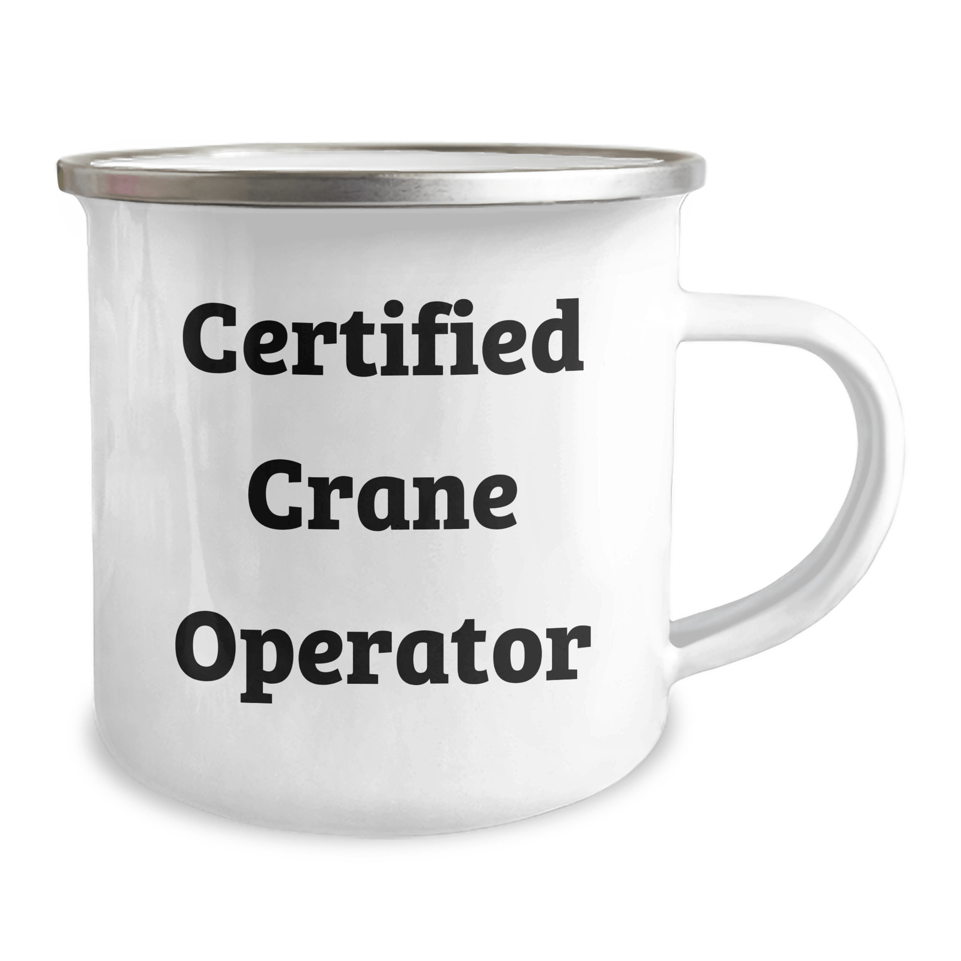 - Get ready for a laugh with this funny 'Certified Crane Operator' Camping Mug, a unique gift for Crane Operator friends and family members