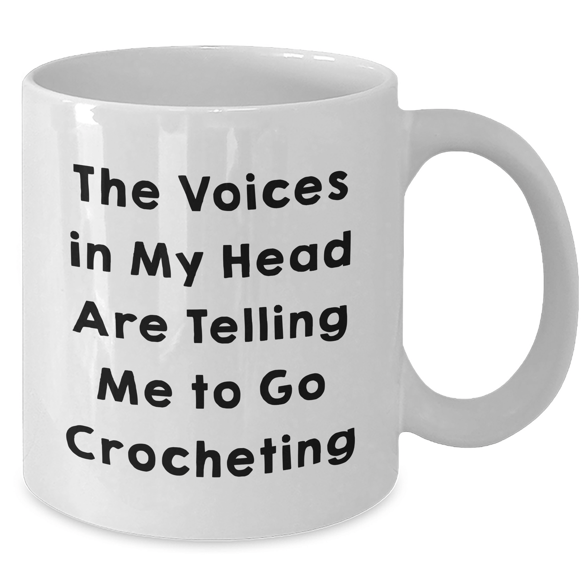 Crocheting enthusiasts, rejoice! This hilarious quote 'The Voices In My Head Are Telling Me To Go Crocheting' is sure to bring a smile to any crocheting lover's face. Whether you're a seasoned pro or just starting out, this white coffee mug is the perfect way to show off your passion for crocheting. Made from high-quality ceramic, it's safe for both microwave and dishwasher use.