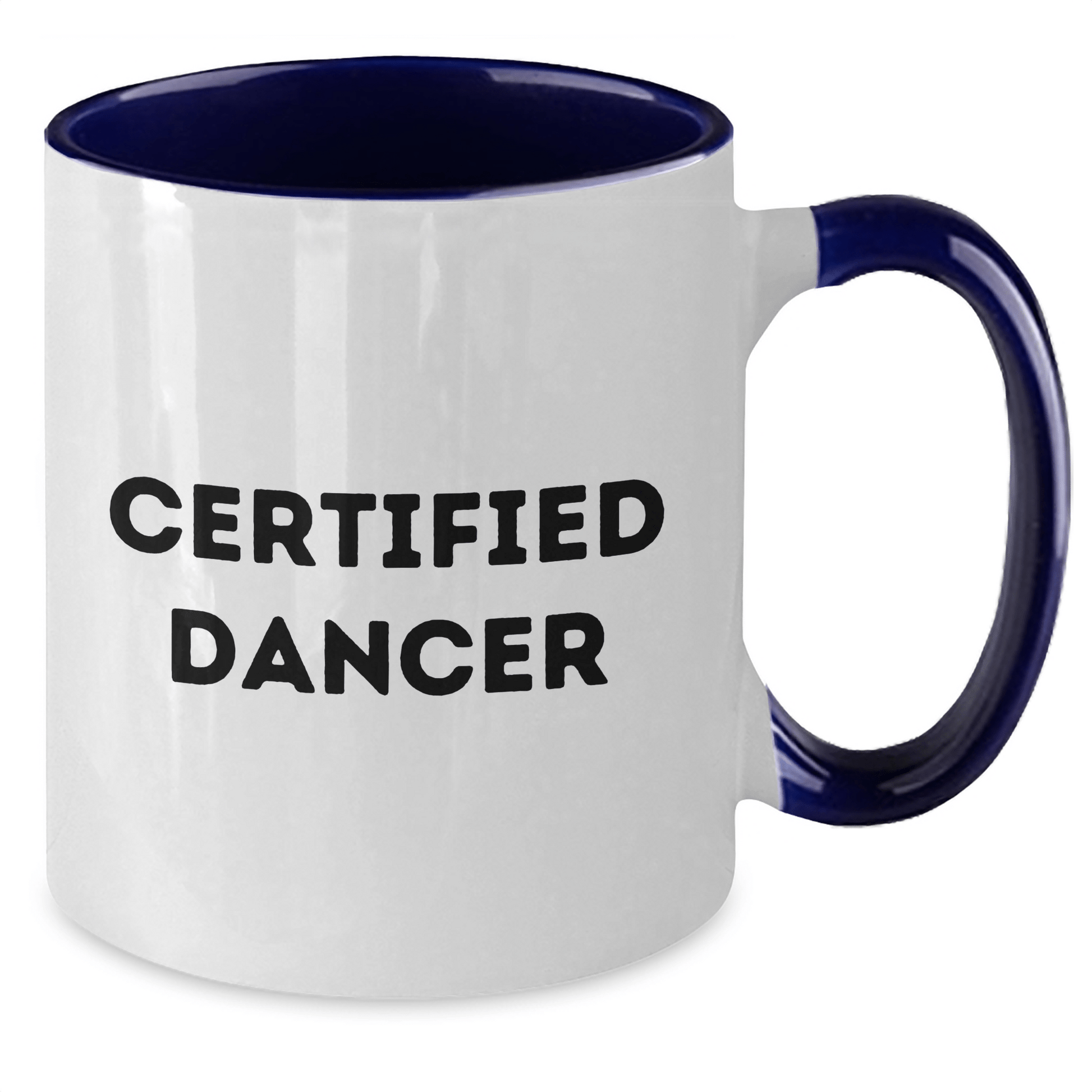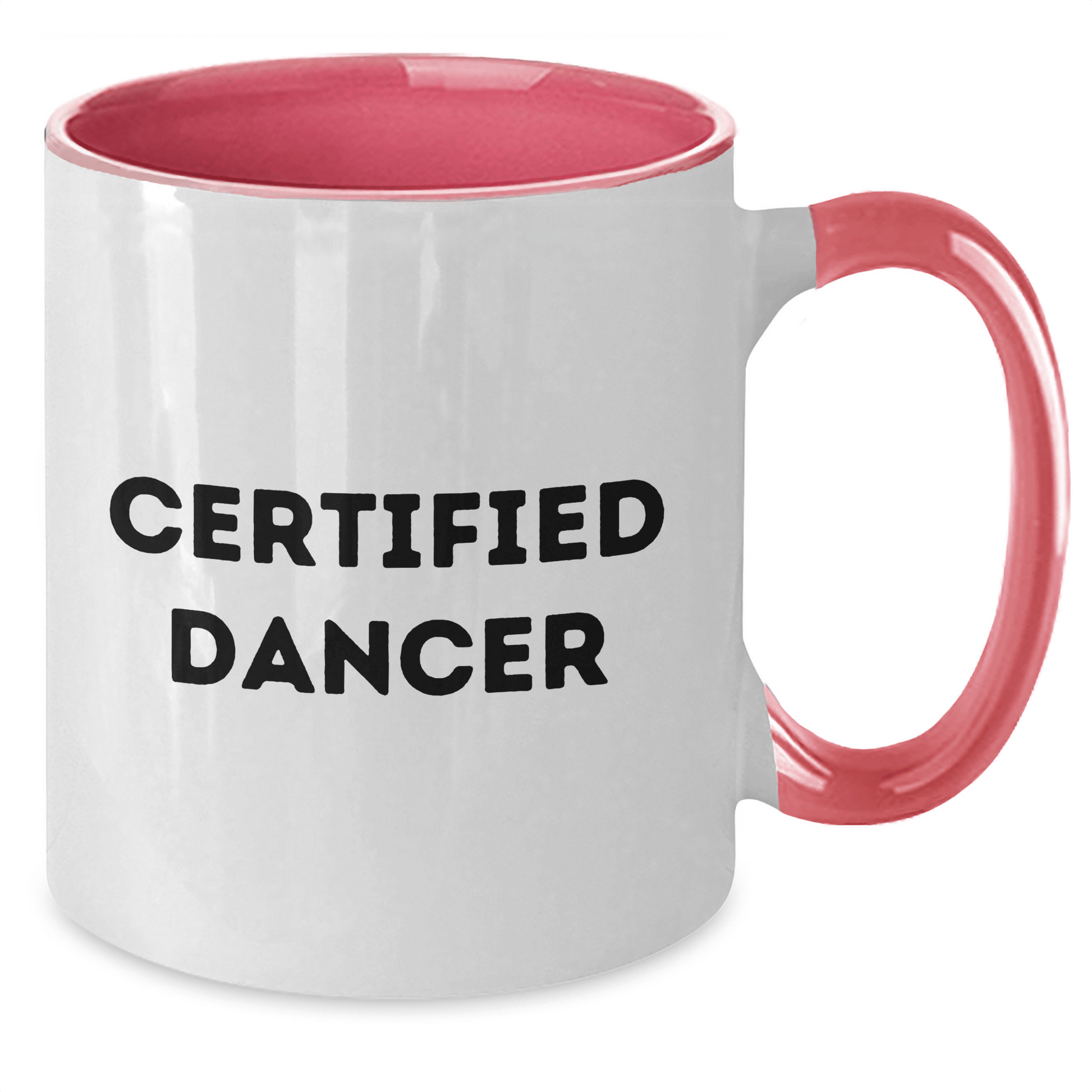 Looking for a unique and funny gift for the dancer in your life? Our Certified Dancer quote on a Two Tone Coffee Mug is the perfect choice for Father's Day! The mug is made of ceramic and comes in four color combinations - Black and White, Red and White, Navy and White, and Pink and White, with an 11oz capacity. It's microwave and dishwasher safe, making it easy to clean and use. Whether you're a friend, family member, or coworker, this mug is a thoughtful and humorous gift for any certified dancer. So, why settle for a boring gift when you can give a gift that will make them laugh and remember you? Get this Two Tone Coffee Mug for the dancer in your life today!
