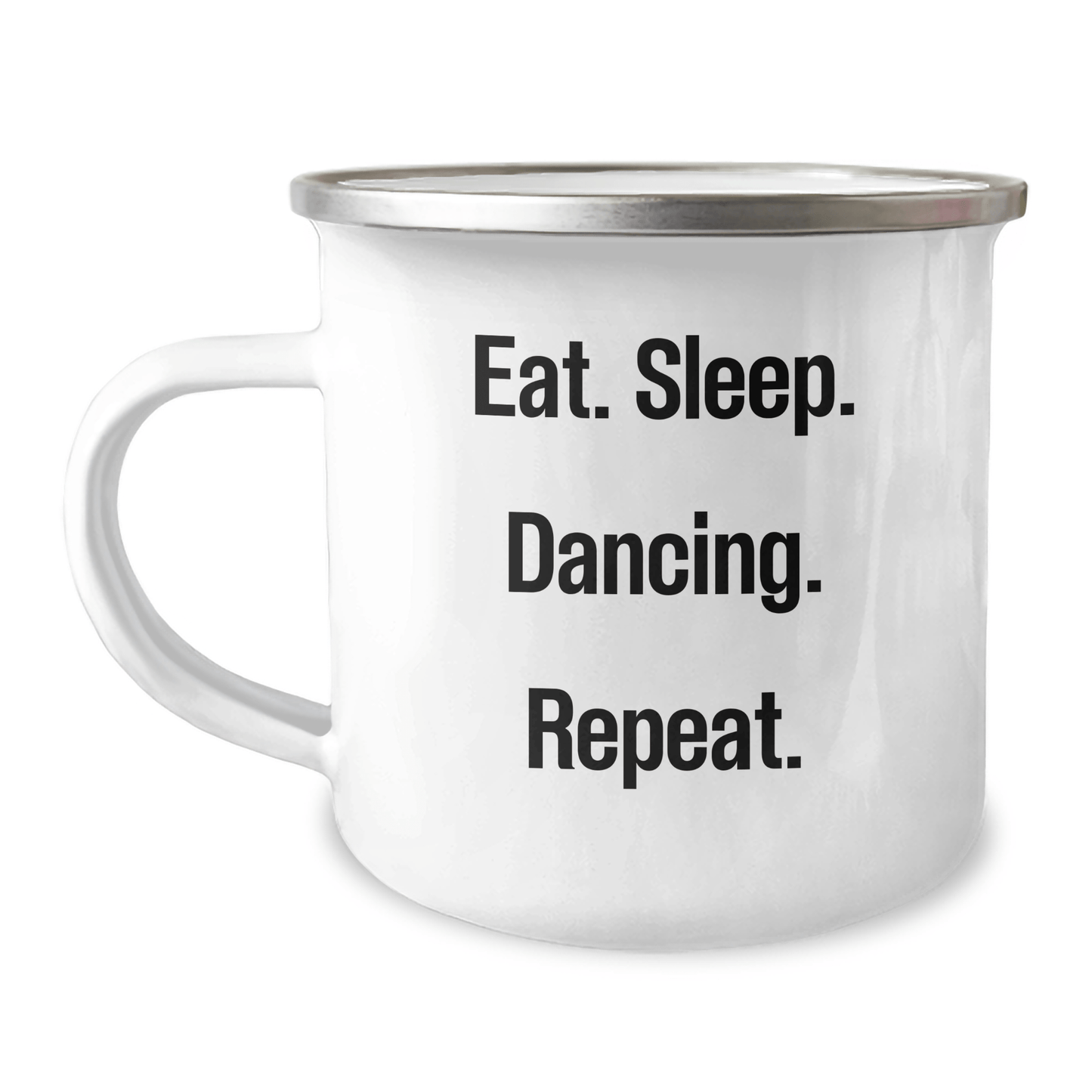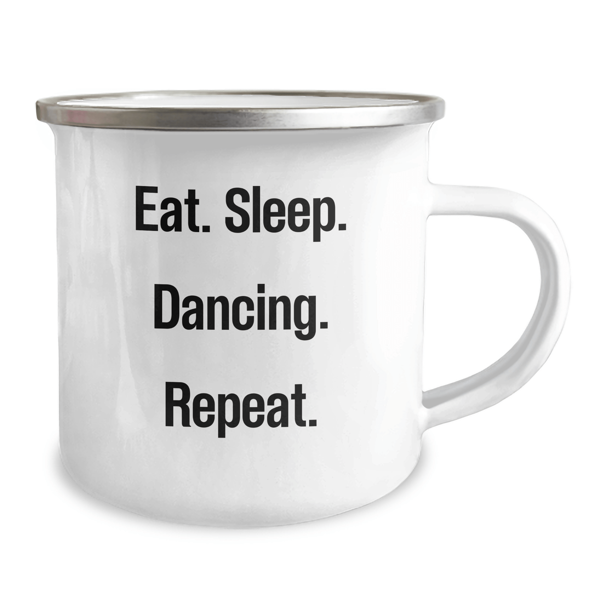 "keywords": "dancing, camping mug, gifts from men, gifts for women, father's day, funny, eat sleep dance repeat, gifts for him, gifts for her, dancing enthusiast, gifts for friends, gifts for family